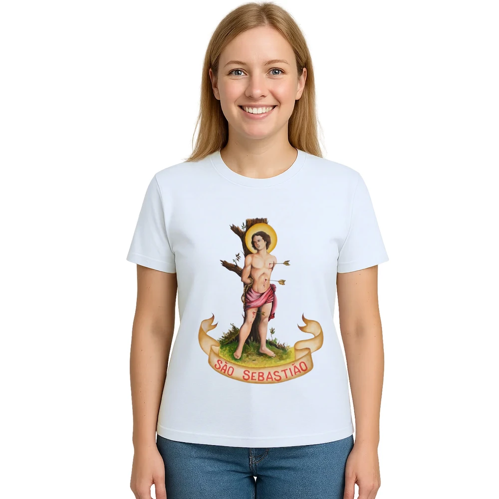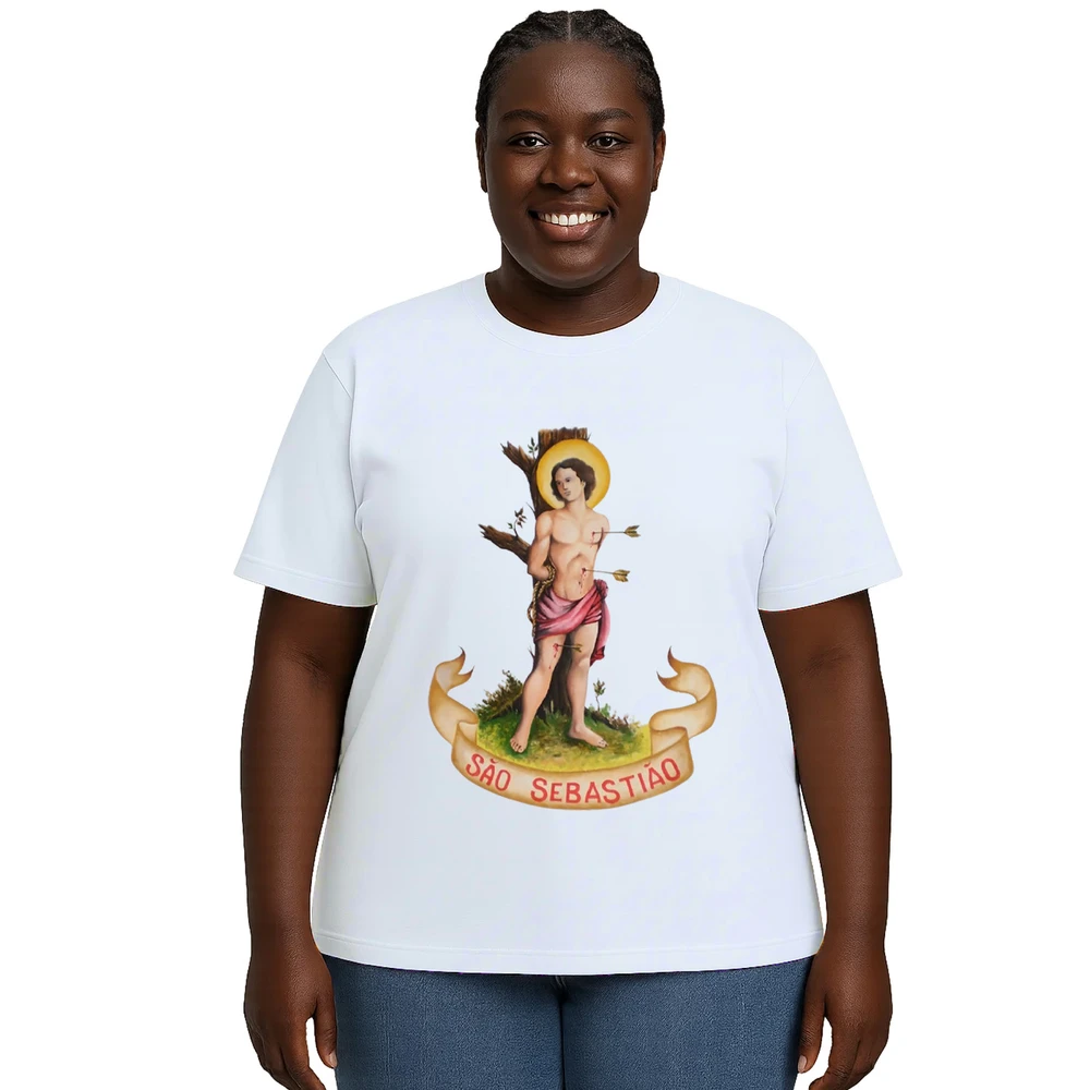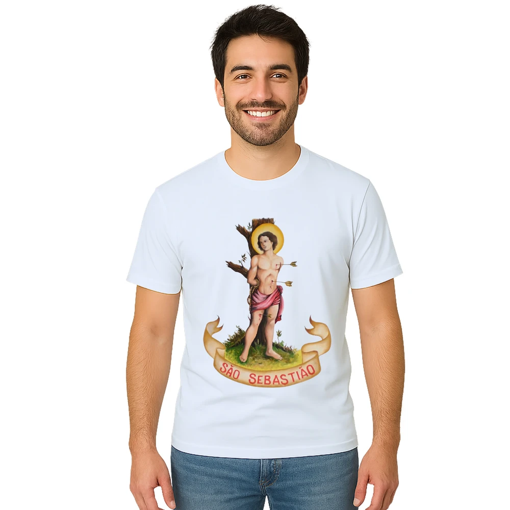 Descubra a Camiseta São Sebastião Faixa Estampa Personalizada, ideal para quem busca unir fé e estilo em um só produto. Confeccionada em tecido de alta qualidade, ela proporciona conforto e durabilidade para o uso diário. A estampa personalizada de São Sebastião, detalhadamente elaborada, traz significado e proteção, conectando você com a tradição e espiritualidade. Seu design unissex atende a todos os públicos, com diversas opções de tamanho, garantindo o caimento perfeito.