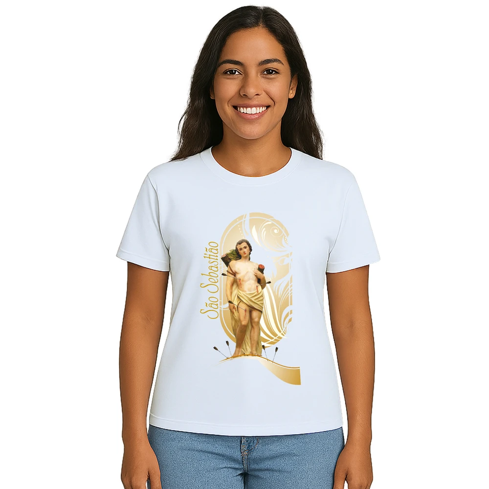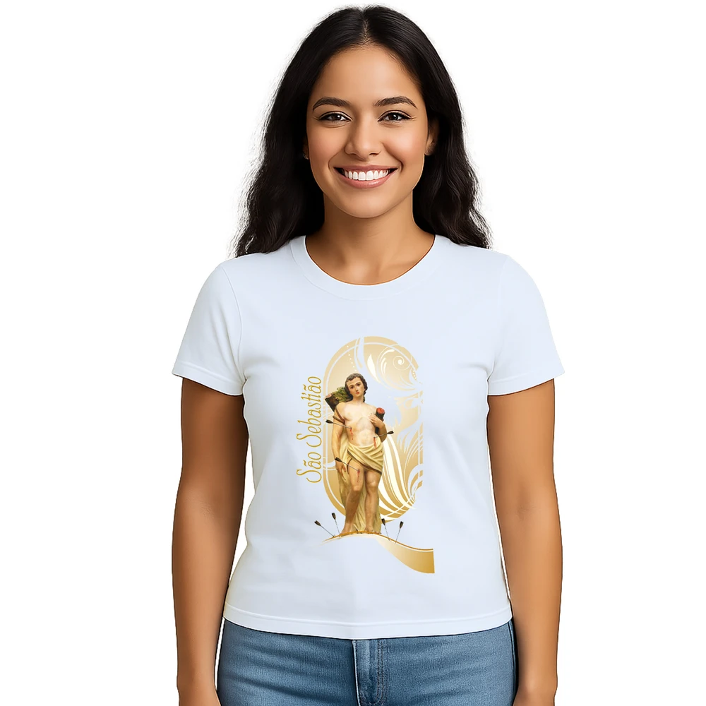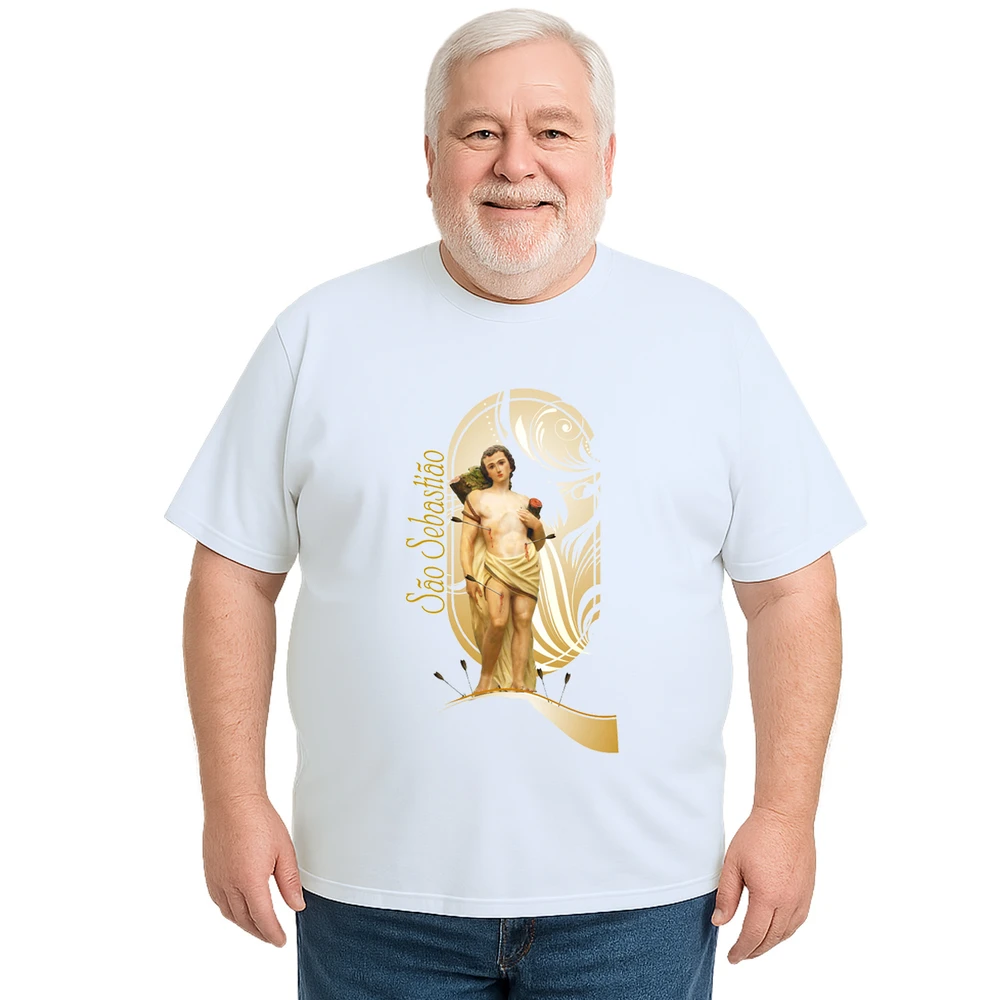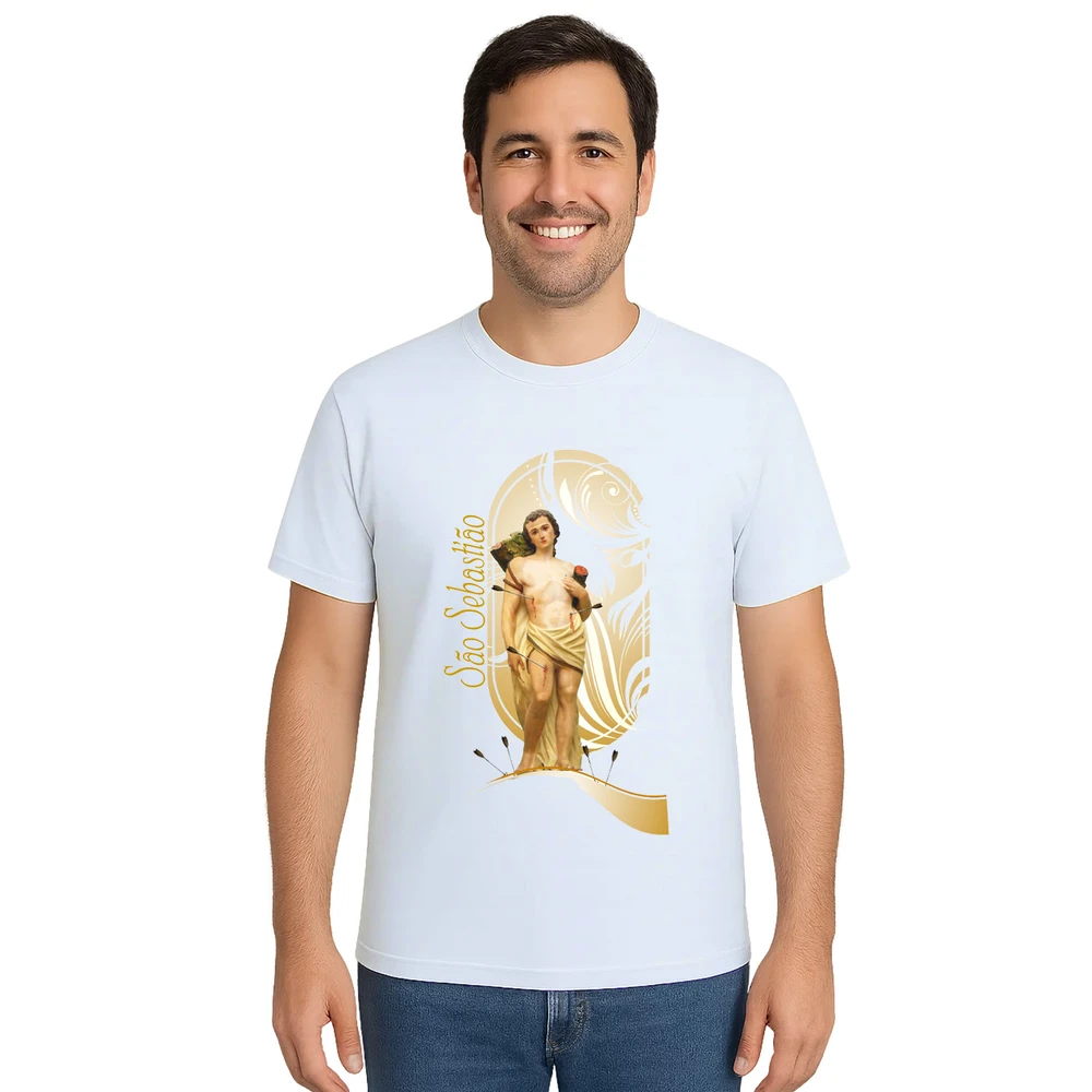 Descubra a conexão perfeita entre fé e estilo com a Camiseta São Sebastião Religiosa Estampa Personalizada. Ideal para quem busca expressar devoção com elegância, esta camiseta une conforto e significado em uma peça exclusiva. A estampa centralizada de São Sebastião traz um design detalhado e delicado, que destaca a proteção e coragem desse santo tão venerado.