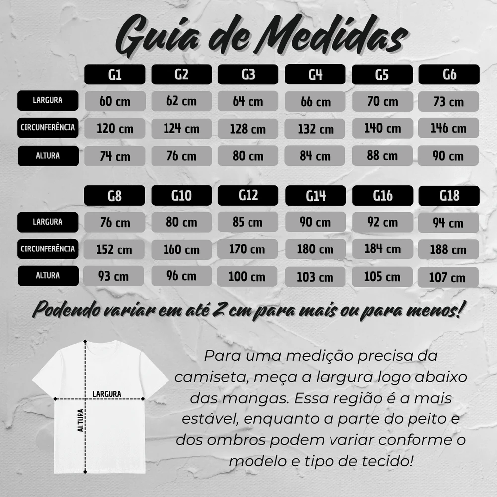 Obs.: Antes de efetuar a compra, observe na tabela de medidas, se o tamanho da peça adquirida corresponde as medidas do usuário da mercadoria!
