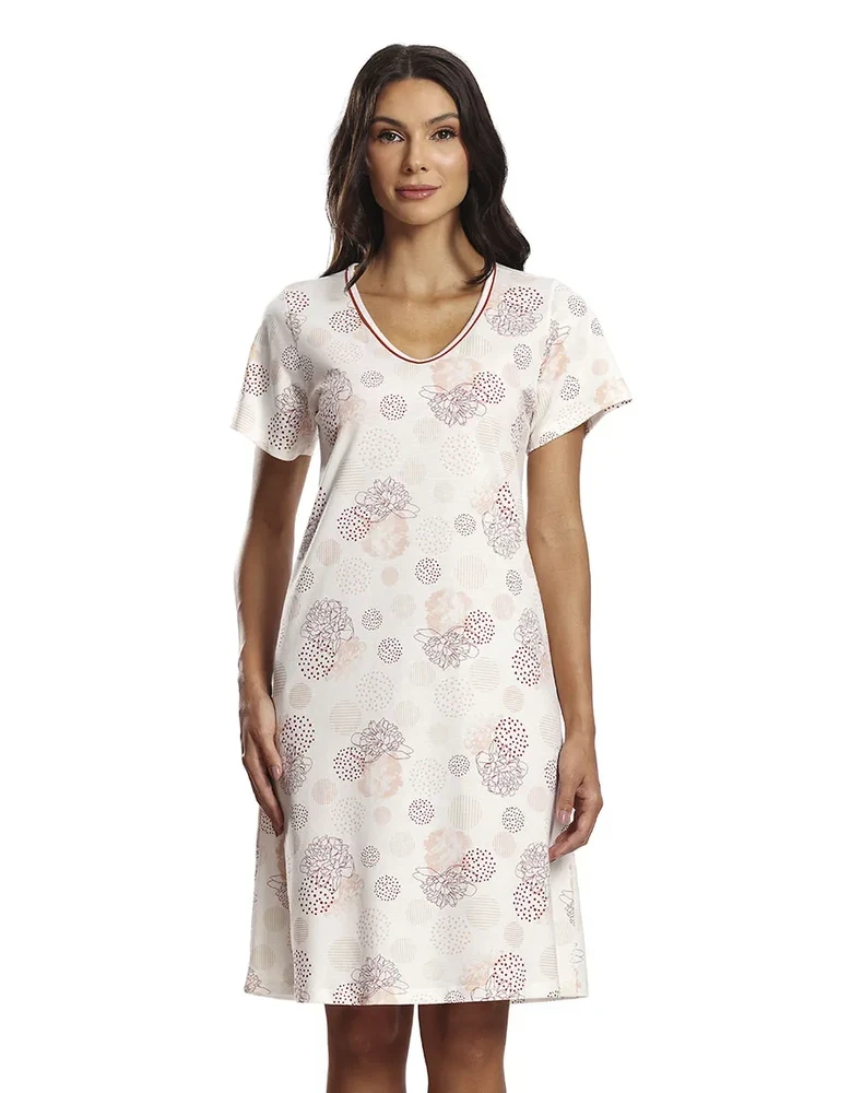 Camisola clássica manga curta Coral Paulienne A camisola clássica manga curta Coral Paulienne une conforto e delicadeza em um design atemporal. Confeccionada em malha de algodão pele de pêssego, possui toque macio e respirável, ideal para o dia a dia. Sua estampa em silk screen confere charme e durabilidade, enquanto o decote em V com acabamento em viés e laço combinando adiciona um toque de elegância ao visual. A modelagem Paulienne garante caimento perfeito e conforto excepcional, tornando esta camisola uma escolha versátil e sofisticada para momentos de descanso ou uso diário. Especificações: Marca: Paulienne Material: Algodão Cor: Coral Acabamento: Estampa em silk screen, decote em V com viés e laço decorativo Diferenciais: Toque macio, caimento confortável, design clássico e elegante Com estilo e suavidade, a camisola Coral Paulienne é perfeita para quem busca conforto e beleza em uma única peça.