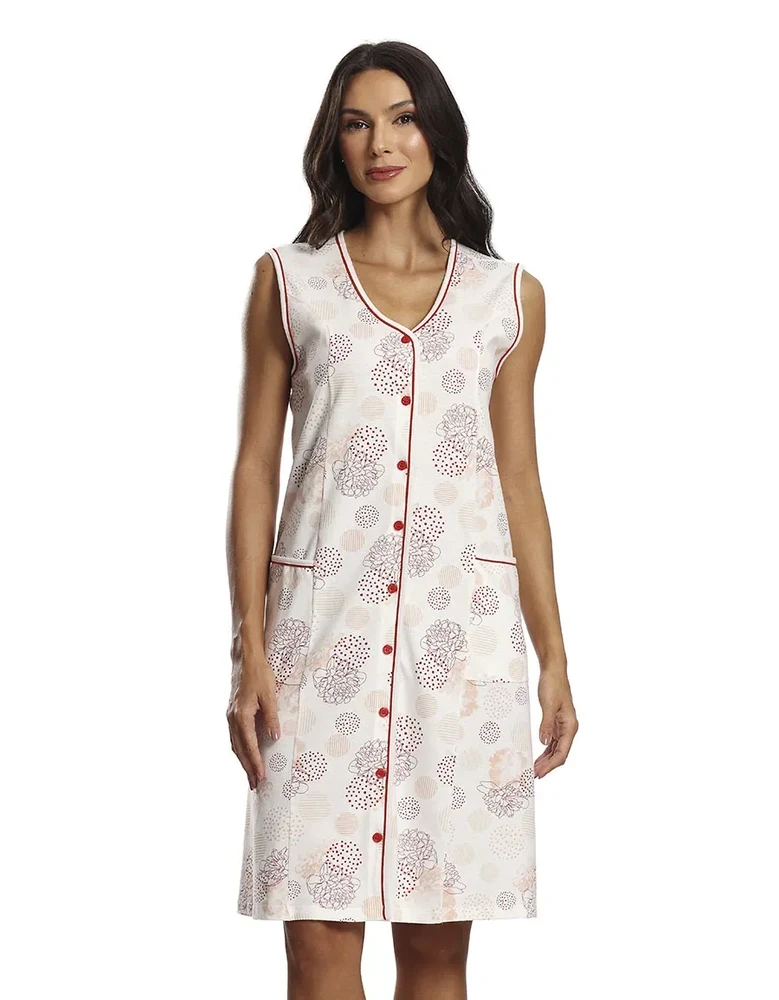 A camisola regata aberta Coral Paulienne une conforto, praticidade e delicadeza em uma peça versátil para o dia a dia. Confeccionada em malha de algodão pele de pêssego, proporciona toque macio e respirável, enquanto a estampa em silk screen adiciona charme sutil ao design clássico. O modelo possui abertura frontal com detalhe em viés, decote em V e bolso lateral, oferecendo praticidade ao vestir. A modelagem Paulienne garante caimento leve e conforto excepcional, tornando a camisola ideal para momentos de relaxamento ou uso diário.