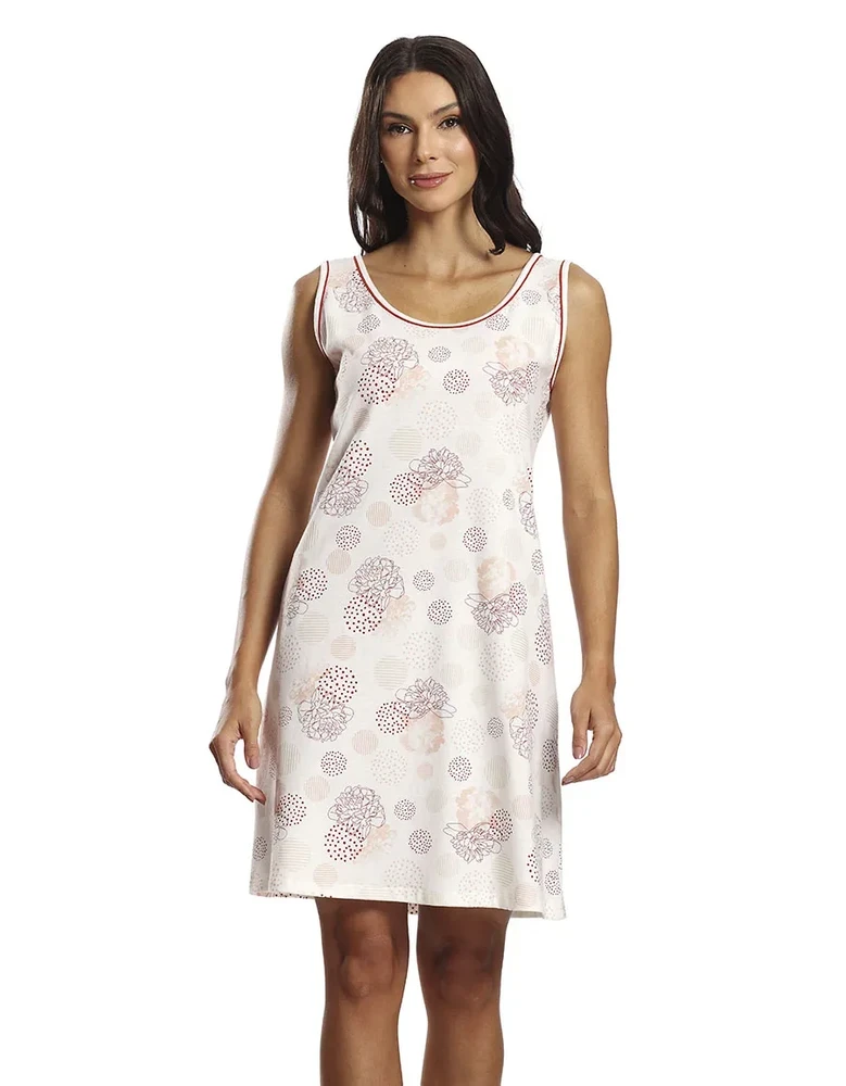 A camisola regata Coral Paulienne combina conforto, delicadeza e estilo em uma peça prática para o dia a dia. Confeccionada em malha de algodão pele de pêssego, oferece toque macio e respirável, enquanto a estampa em silk screen, aplicada na frente e nas costas, garante durabilidade e visual exclusivo. O decote arredondado e a gola cavada, acompanhados do acabamento em viés de malha lisa, adicionam sofisticação e elegância à peça. A modelagem Paulienne proporciona caimento leve e conforto excepcional, tornando a camisola ideal para diversas ocasiões.