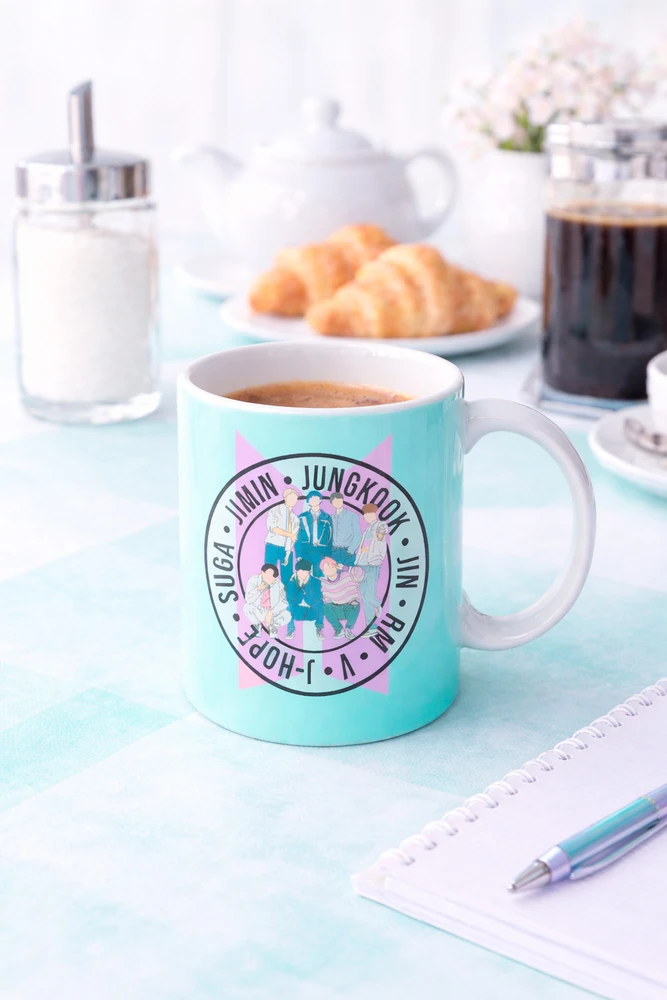 design exclusivo e vibrante, reunimos o grupo de K-pop mais amado do mundo em uma caneca com arte exclusiva que vai deixar sua hora do café cheia de personalidade. Ela é perfeita para deixar sua mesa ou cantinho do café ainda mais estiloso e com a sua cara. Produzida em cerâmica resistente e
