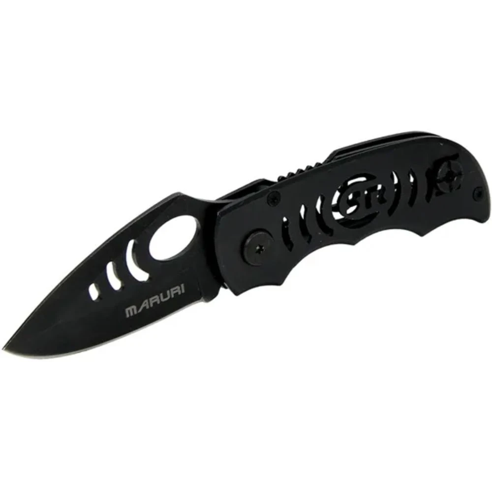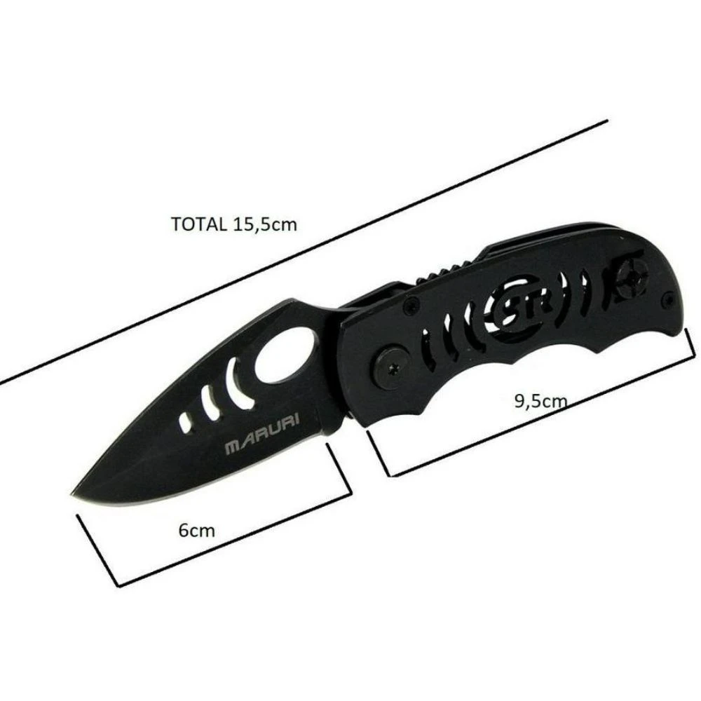 O Canivete SR188B da Maruri, tem sua lâmina fabricada em aço inoxidável com 2,4mm de espessura, conferindo grande qualidade, durabilidade e resistência à corrosão, com design moderno e conta também com um acabamento em preto fosco. O Canivete SR 188b tem o cabo vazado deixando-o leve, além de anatômico e confortável. Possui trava de segurança.