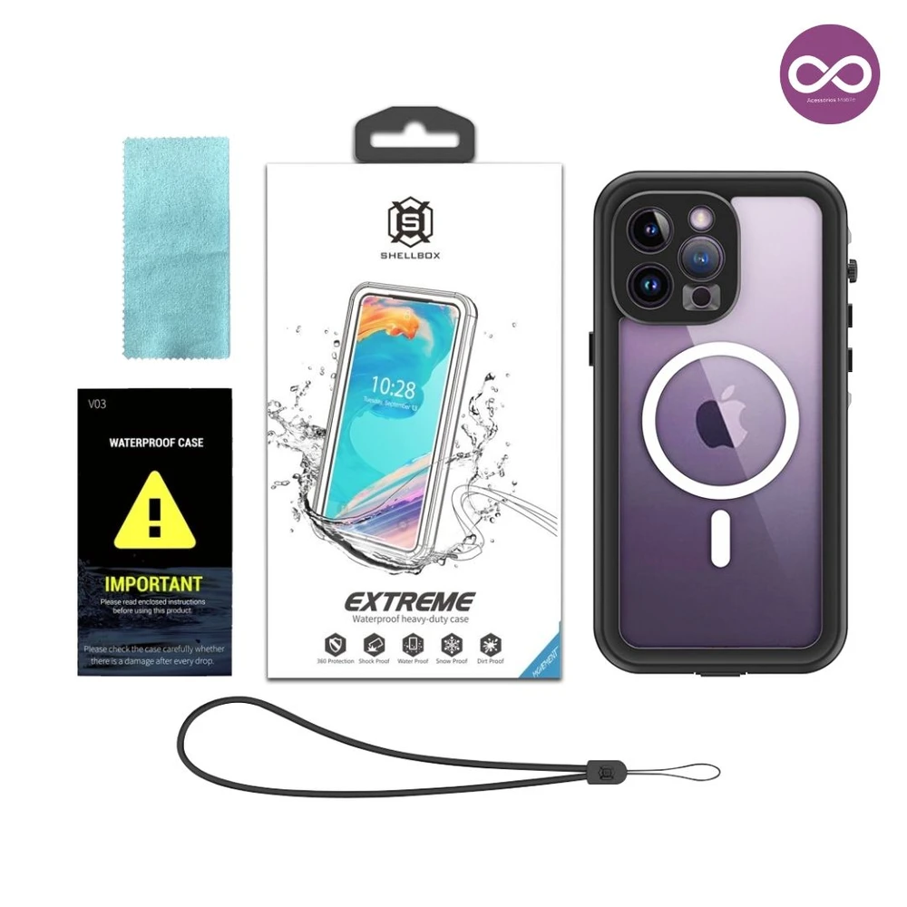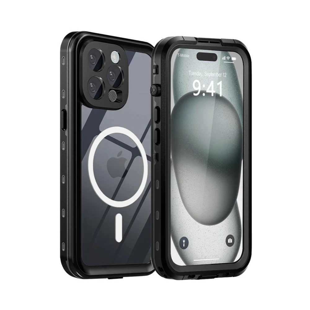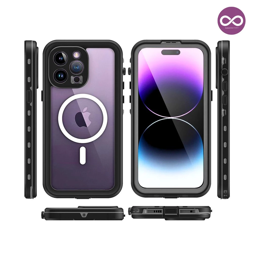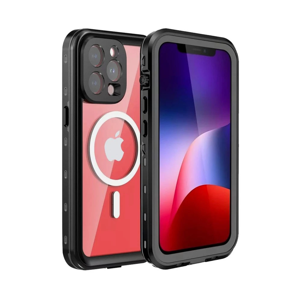 Mantenha seu iPhone seguro e estiloso com a Capa à Prova D'água MagSafe! Desfrute de proteção total sem abrir mão da conveniência do MagSafe. Ideal para todas as suas aventuras, dentro e fora d'água. A capa não prejudica o touch para digitação e ela é antichoque proteção traseira, display na frente, lentes e tampa proteção da entrada lightning carregamento; à prova de sujeira e água com certificado IP68 com duração de 60min embaixo d?água e 3 metros de profundidade.