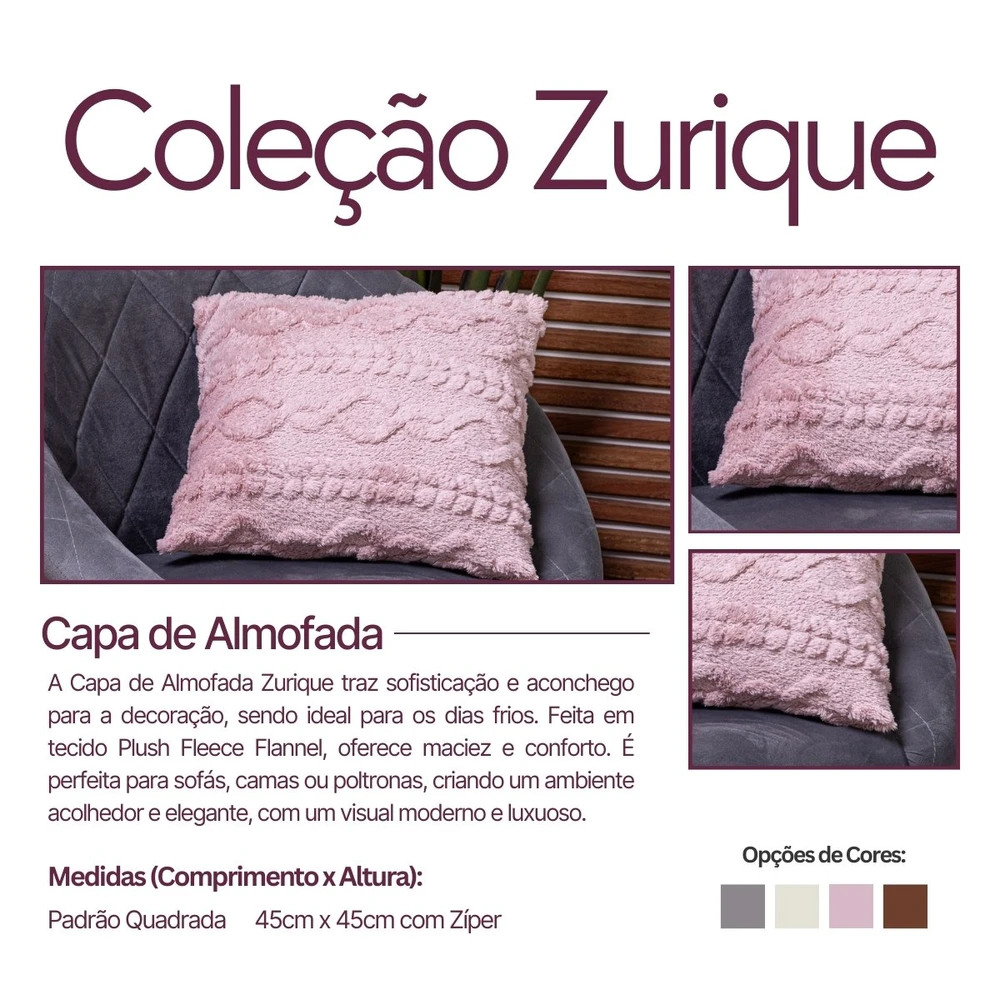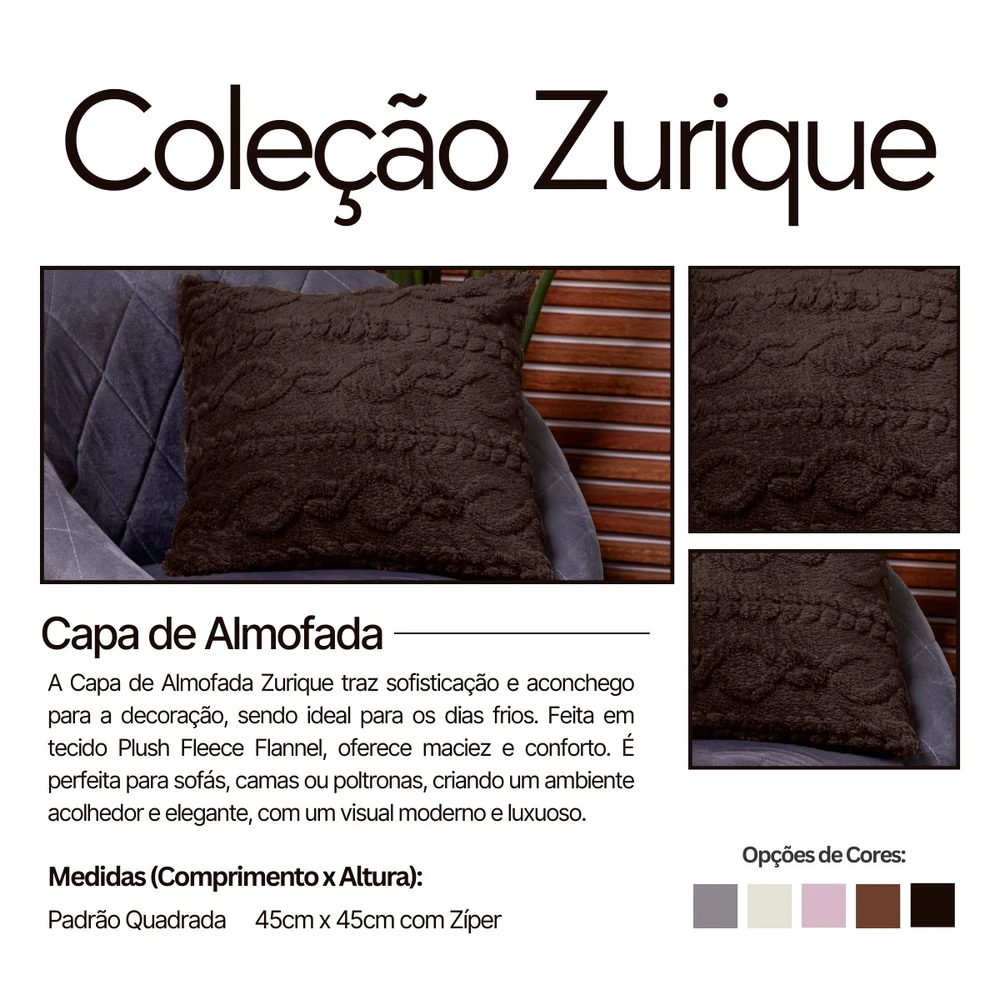 A Capa de Almofada Zurique traz um toque de sofisticação e aconchego para sua decoração, especialmente pensada para os dias mais frios. Confeccionada em manta trançada de alto relevo, o tecido Plush Fleece Flannel proporciona uma sensação de maciez e conforto incomparáveis. Com medidas de 45cm x 45cm, é ideal para dar aquele charme extra ao sofá, cama ou poltrona. Sua textura envolvente e quente cria um ambiente acolhedor e elegante, perfeita para os dias de inverno. Decoração de luxo que combina funcionalidade e estilo, elevando o nível de qualquer espaço com um visual moderno e acolhedor. Confira!