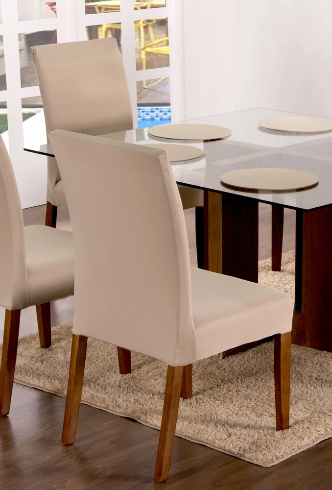 Jogo 6 Capas de cadeira Composição: Malha 100% PoliésterMedidas: Assento 0,40cm x 0,40cm, Encosto 0,42cm x 0,47cm Para mudar o visual da sua sala de jantar, a capa para cadeira é um item indispensável em sua decoração, além de proporcionar um maior aconchego e comodidade e tampar certas imperfeições indesejadas em seu móvel, e também renova seu espaço gastando pouco. As fotos são meramente ilustrativas. As cores podem variar de acordo com cada monitor. Somos os únicos com qualidade e preços de fábrica! ATENÇÃO: Venda somente das capas de cadeira