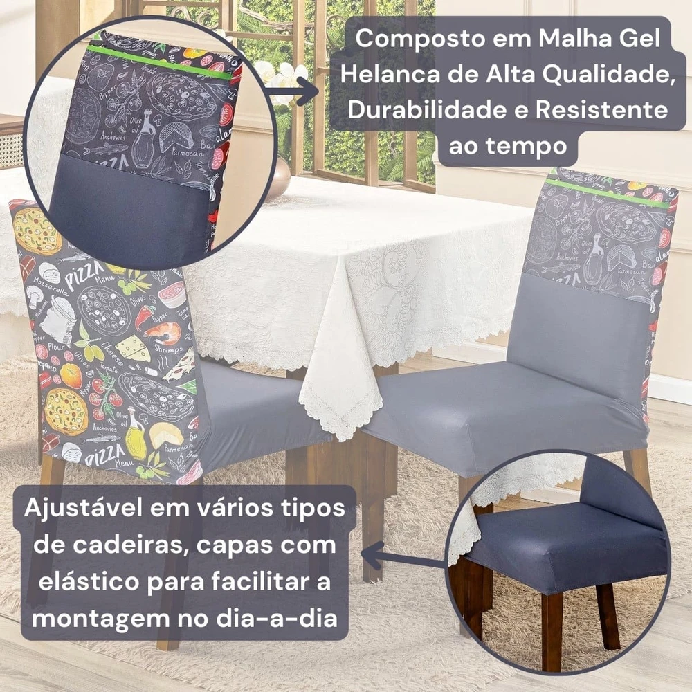 Transforme suas refeições em momentos de estilo e proteção com a nossa Capa de Cadeira Estampada! Quando o assunto é decorar com elegância e garantir a durabilidade de seus móveis, nossa Capa de Cadeira é a escolha perfeita. Confeccionada com materiais de qualidade, como malha gel helanca, oferece não apenas um toque suave e confortável, mas também uma elasticidade e resistência excepcional contra desgastes do dia a dia. A praticidade é um dos pontos fortes: graças ao seu design ajustável com elástico, a capa se adapta facilmente a uma variedade de estilos e tamanhos de cadeiras de jantar, proporcionando um ajuste perfeito em questão de segundos. Diga adeus à preocupação com medidas exatas! Além disso, o visual estampado traz um toque de sofisticação e vivacidade para sua cozinha ou sala de jantar, transformando o ambiente em um espaço convidativo e cheio de personalidade com várias cores e desenhos temáticos. Seja para ocasiões especiais ou para o dia a dia, nossas capas garantem que cada refeição seja servida com estilo. Invista na qualidade, beleza e praticidade dos nossos produtos e eleve o conforto e o estilo de sua casa a um novo nível. Confira!