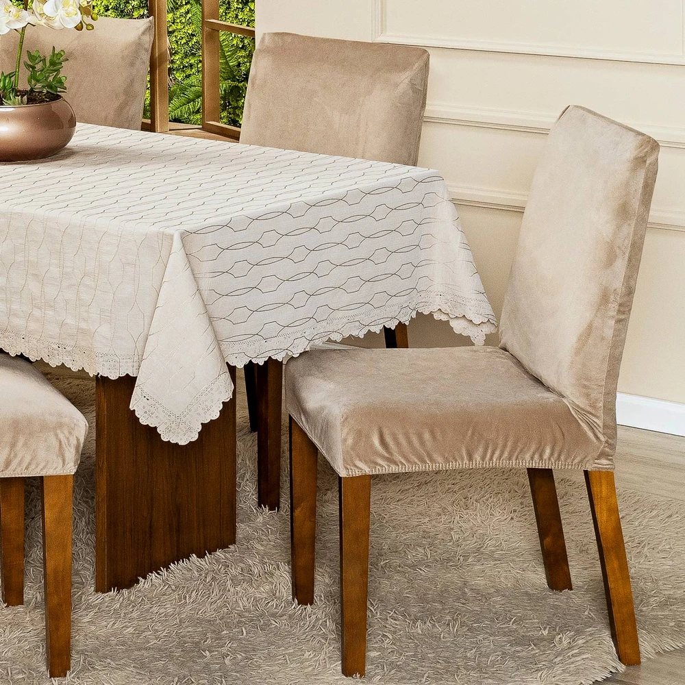 Fácil de Colocar: A capa pode ser facilmente colocada e retirada, permitindo uma rápida renovação do visual das suas cadeiras sempre que desejar.