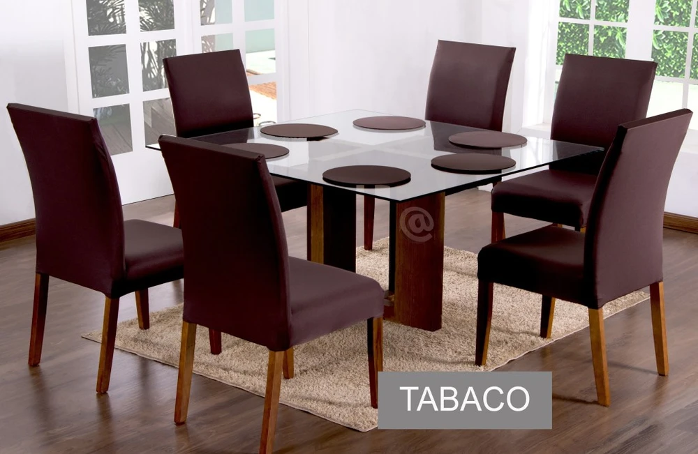 Jogo de capas de cadeira 06 peças, contém 06 capas de cadeira: assento 0,40 x 0,40 encosto 0,42 x 0,47, compsoição: malha gel: 100% poliéster