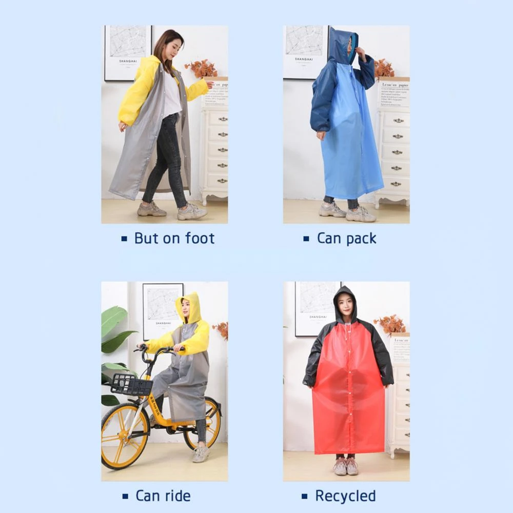 Este tipo de capa de chuva tem excelente desempenho à prova dwaterproof água que pode efetivamente manter a roupa seca e quente no exterior para um dia chuvoso e do vento, ele também tem boné com capuz para melhor proteger sua cabeça e cabelo.