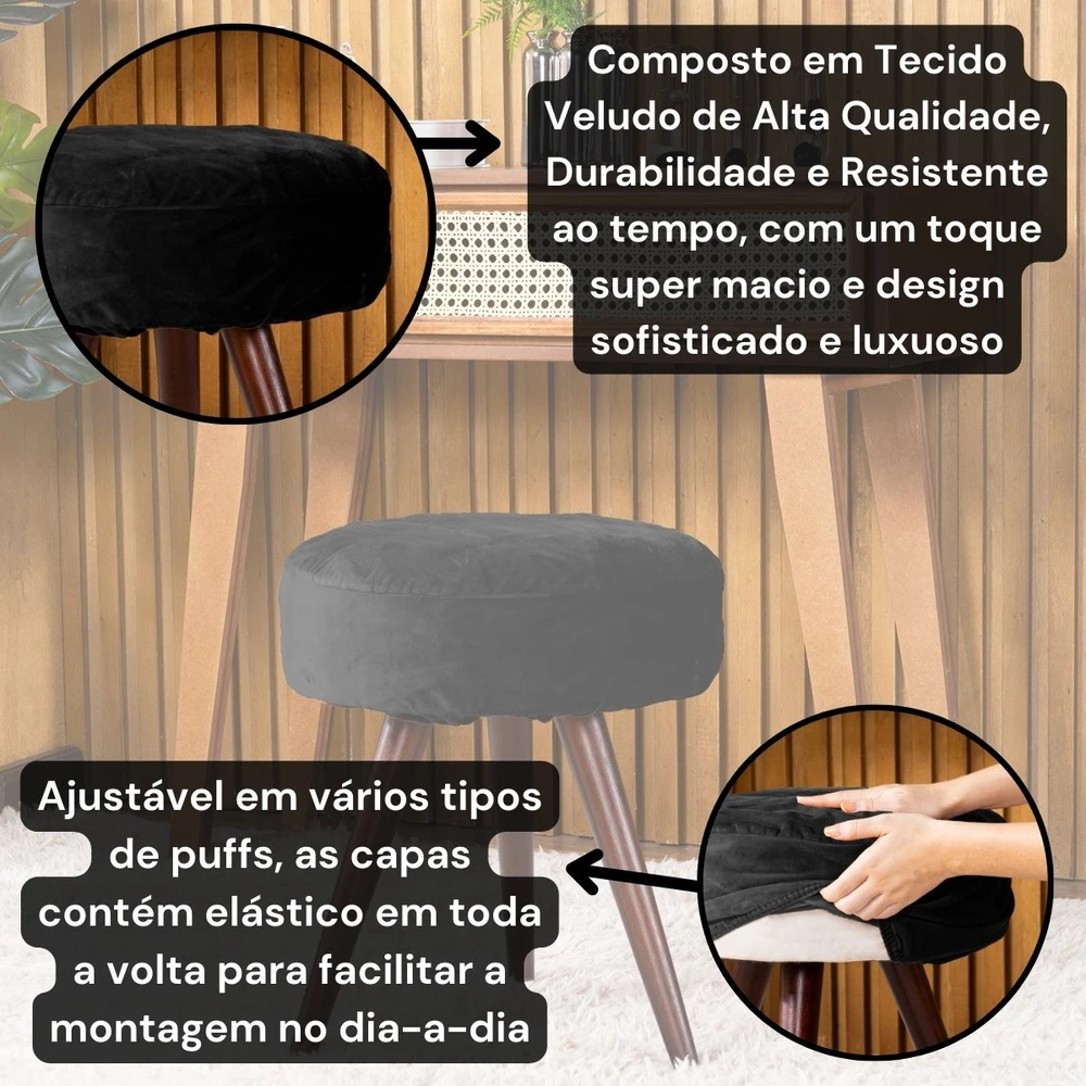 Adicione um toque de sofisticação e conforto à sua casa com a nossa Capa de Puff. Feita com tecido de veludo em suede premium, esta capa não só oferece um visual elegante, mas também proporciona uma sensação luxuosa ao toque. Com seu design ajustável e elástico, é fácil vestir e garantir um ajuste perfeito em qualquer puff redondo. Seja na sala de estar, no quarto ou em qualquer espaço, esta capa é a escolha ideal para elevar a decoração e transformar seu banquinho em um símbolo de luxo e conforto. Experimente a sensação de requinte com essa capa! Confira!