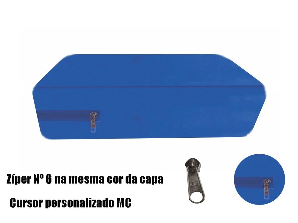 Possui zíper que acompanha a largura, garantindo que você coloque