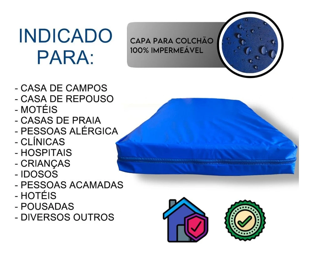 Confeccionada em bagum de alta qualidade com forro interno de malha em poliéster que garante maior resistência a capa transformando o seu colchão comum em um colchão hospitalar totalmente higiênico e antialérgico.