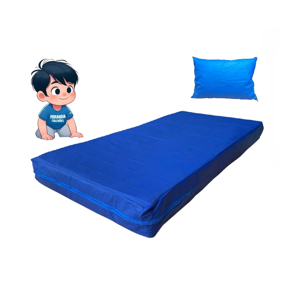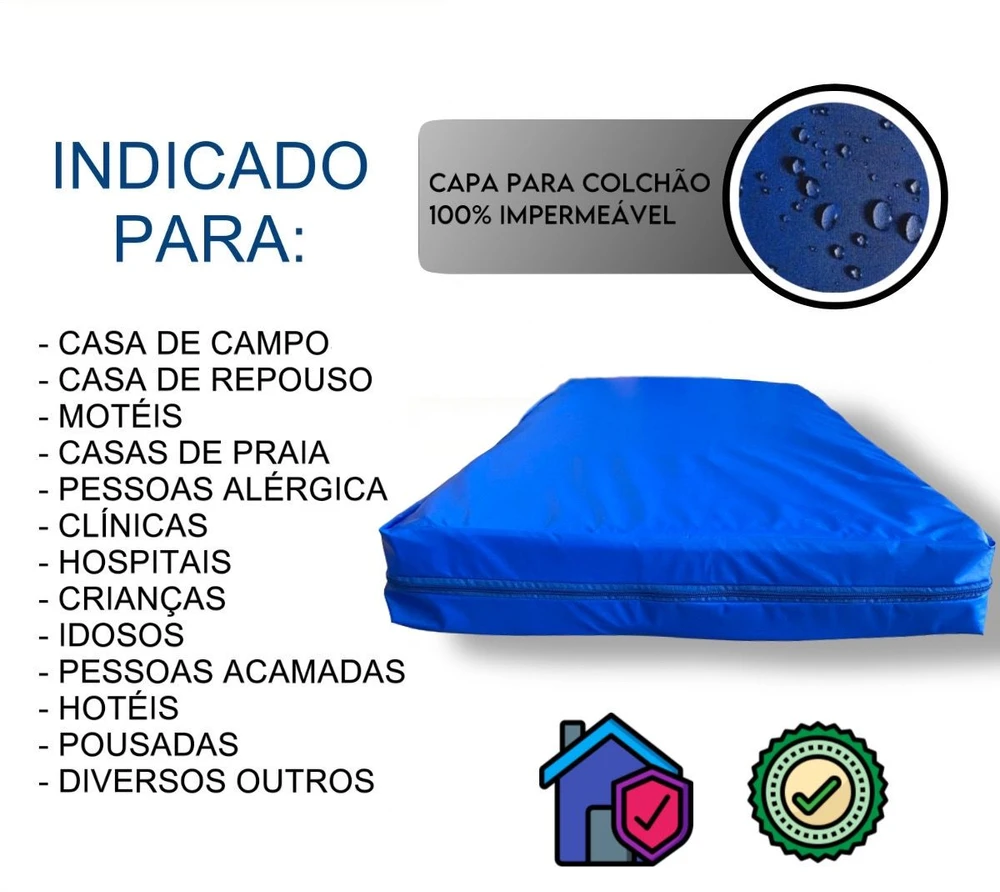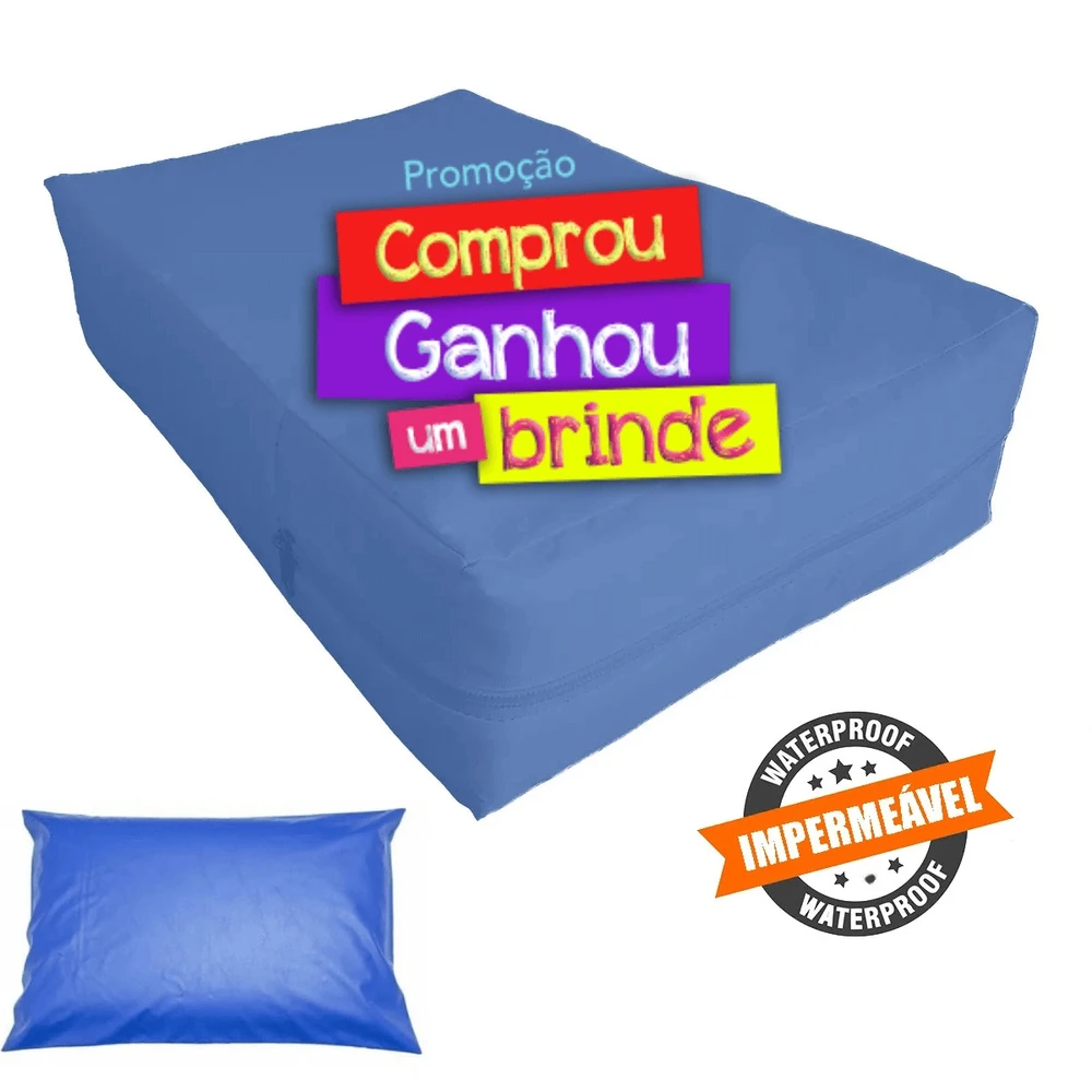 Capa Impermeável tipo Hospitalar p/ Colchão Solteiro + Brinde  (01und Capa Impermeável p/ Travesseiro tipo Hospitalar) - Azul
