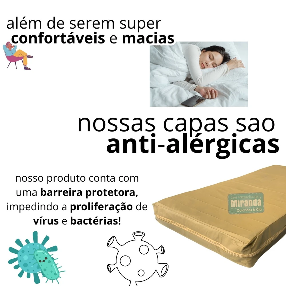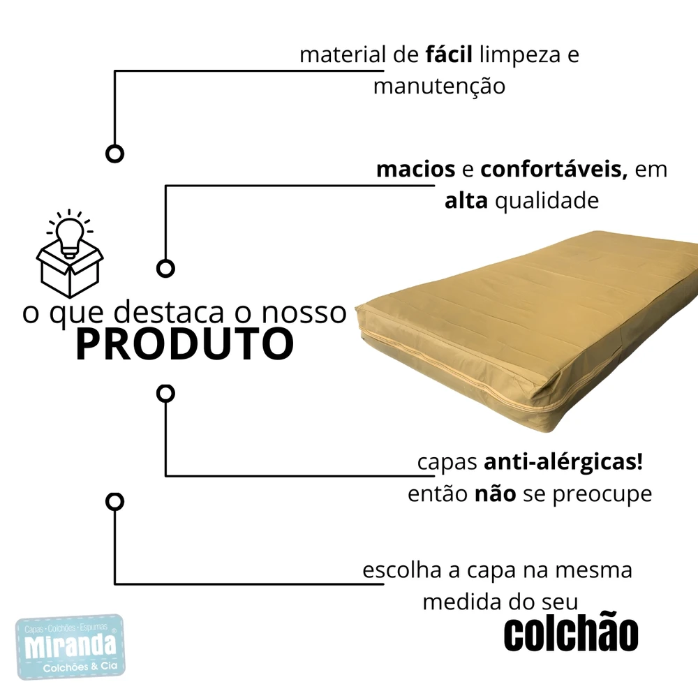 Confeccionada em napa bagum com forro de malha em poliéster esta capa transforma o seu colchão comum num colchão hospitalar