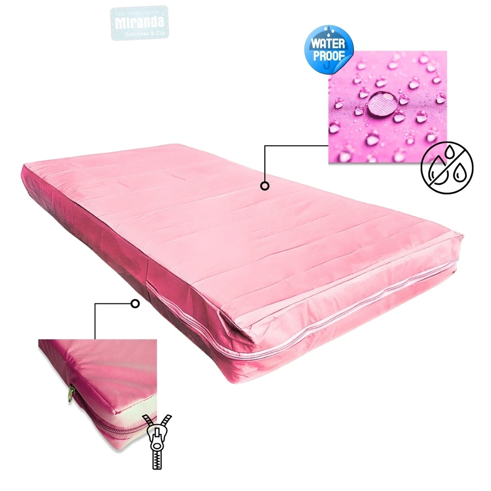 Capa Para Colchão Berço Mini Cama Impermeável Com Ziper Na Cor Rosa Bebê
