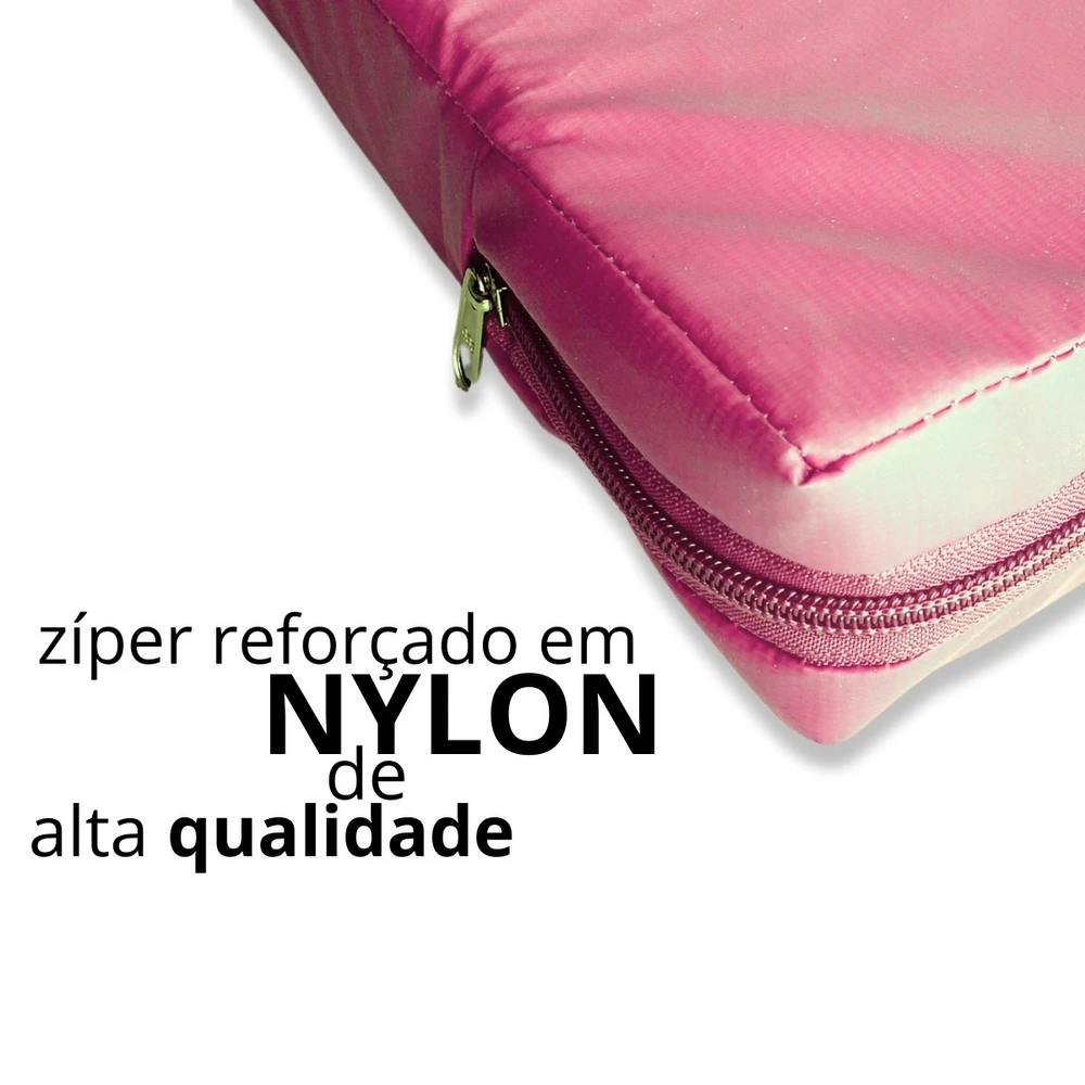 Vem com um ziper que acompanha a largura, garantindo que você coloque