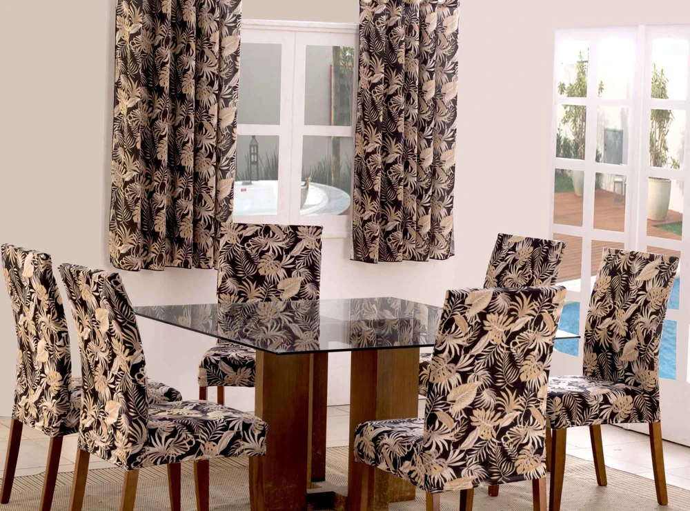 Capas de Cadeira 06 Lugares Floral Preto