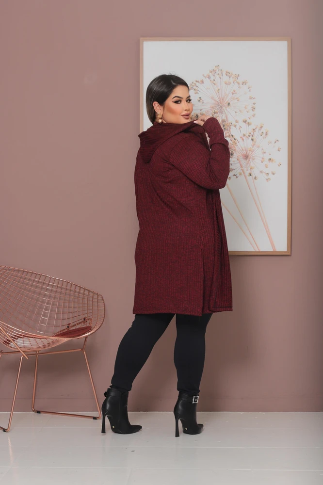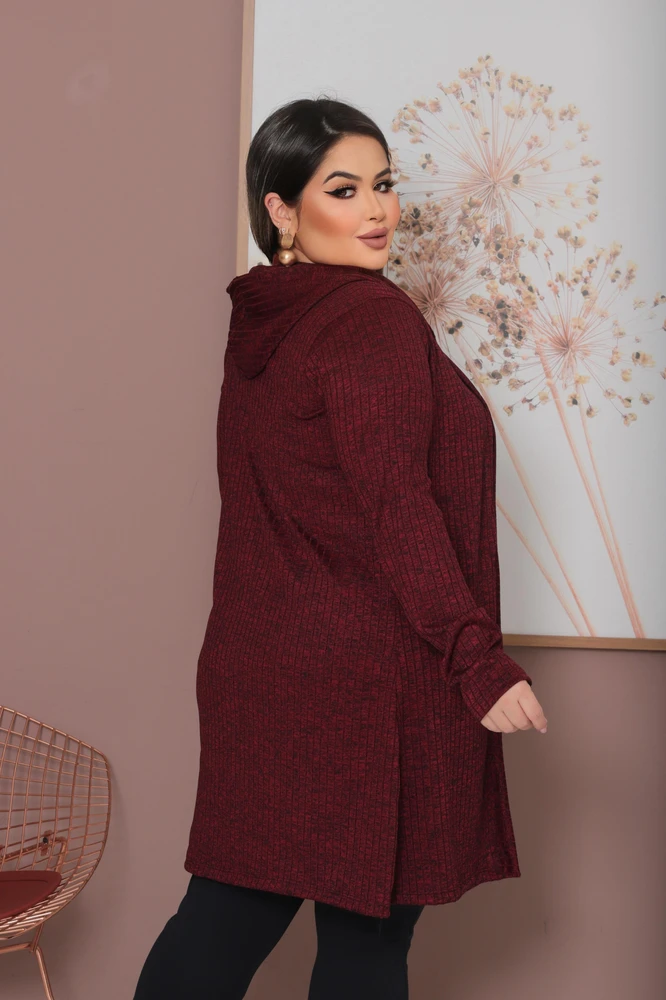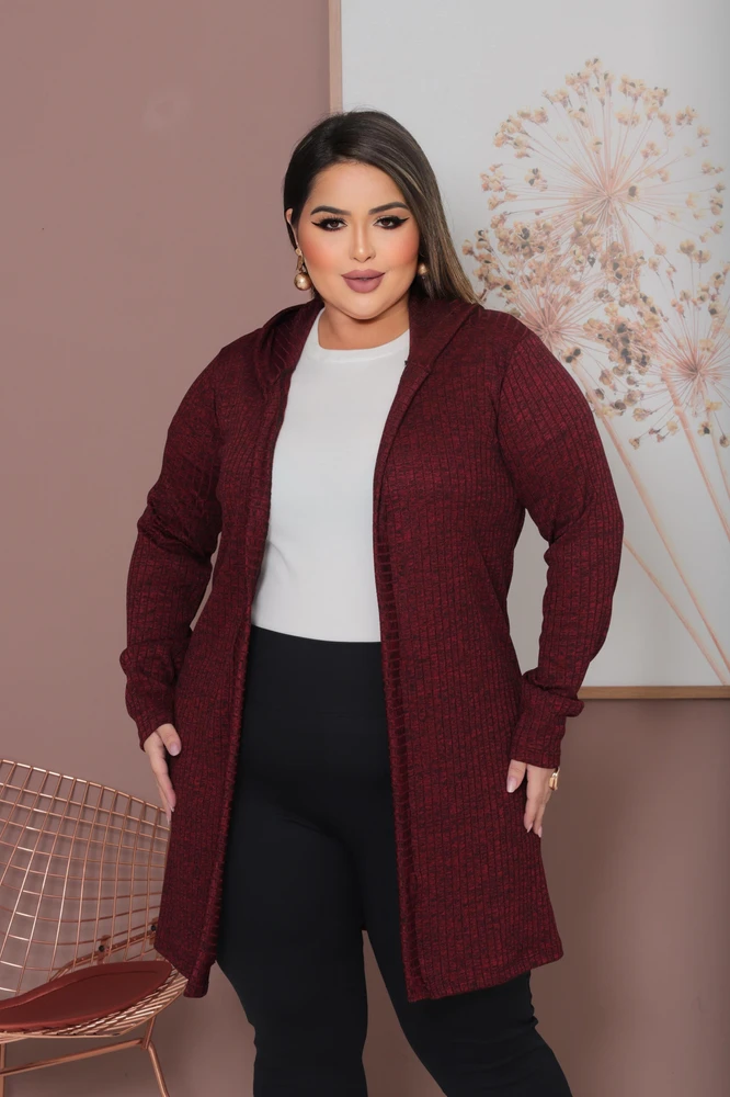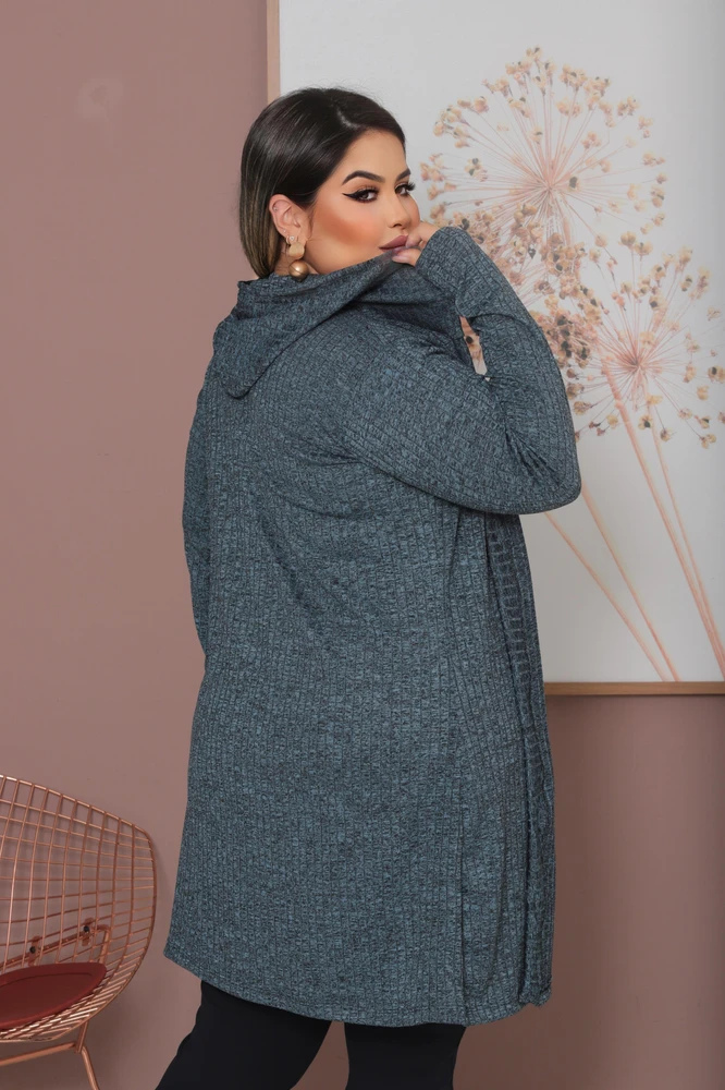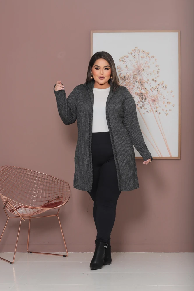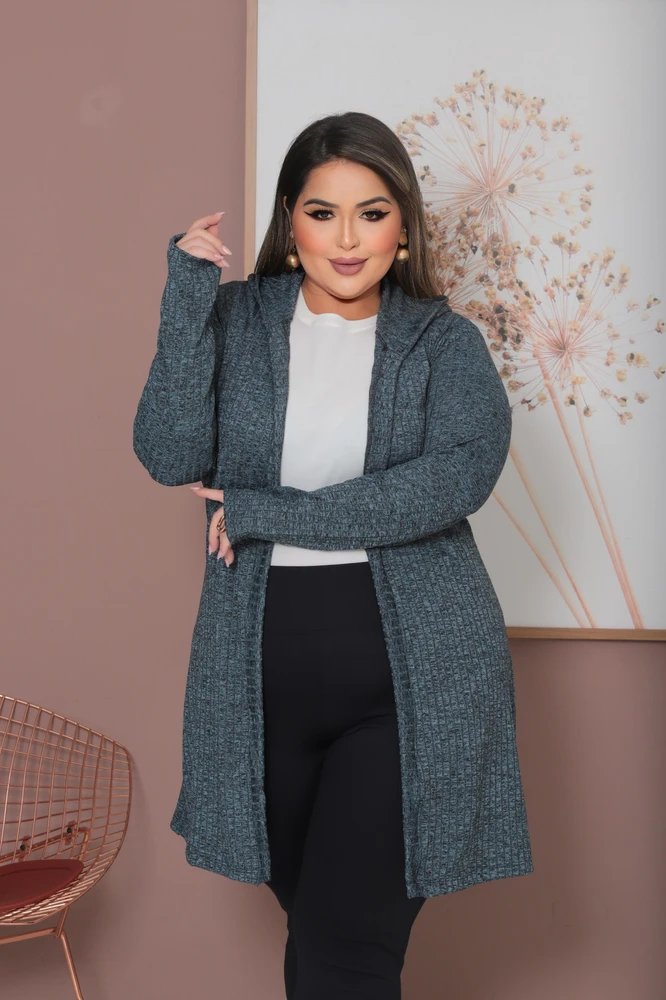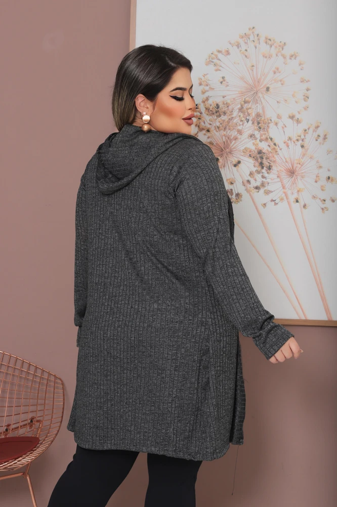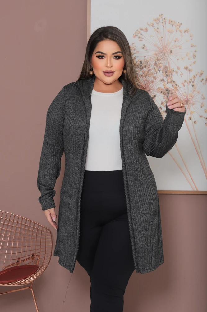 Cardigan Plus Size Lanzinha Canelada Premium com Touca Tendência Inverno