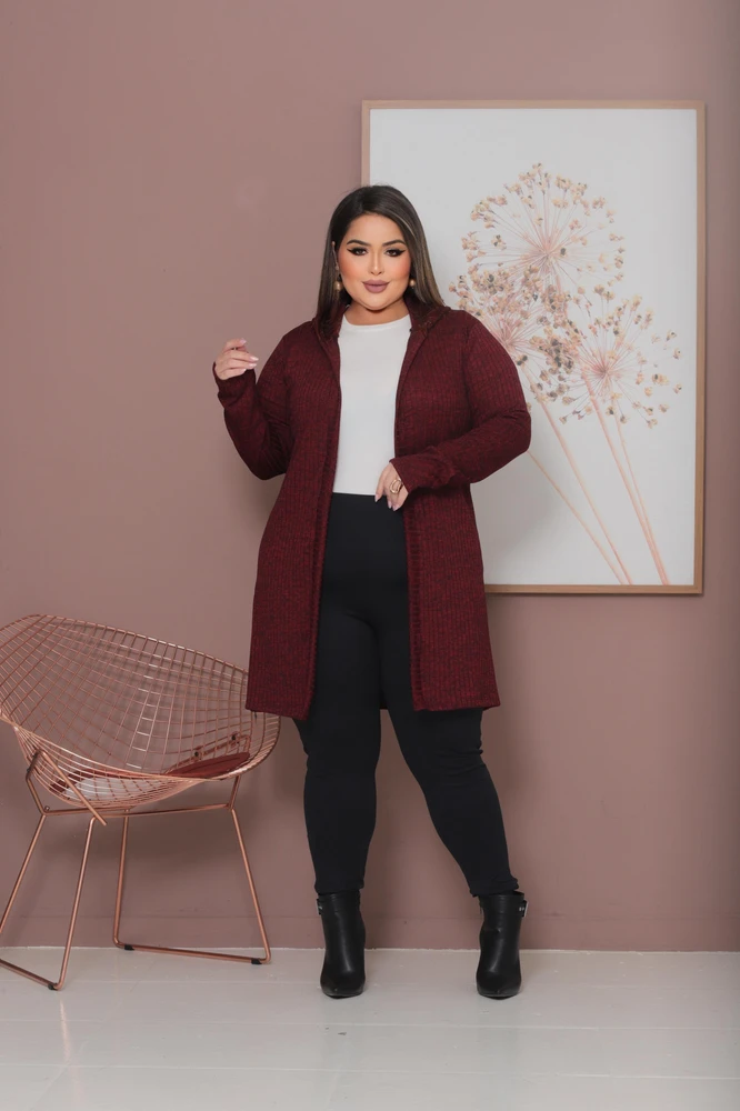 O inverno chegou e nada melhor do que se manter aquecida e estilosa com o Cardigan Plus Size Lanzinha Canelada Premium com Touca Tendência Inverno. Com um design moderno e confortável, esse cardigan é perfeito para compor looks incríveis nos dias mais frios.