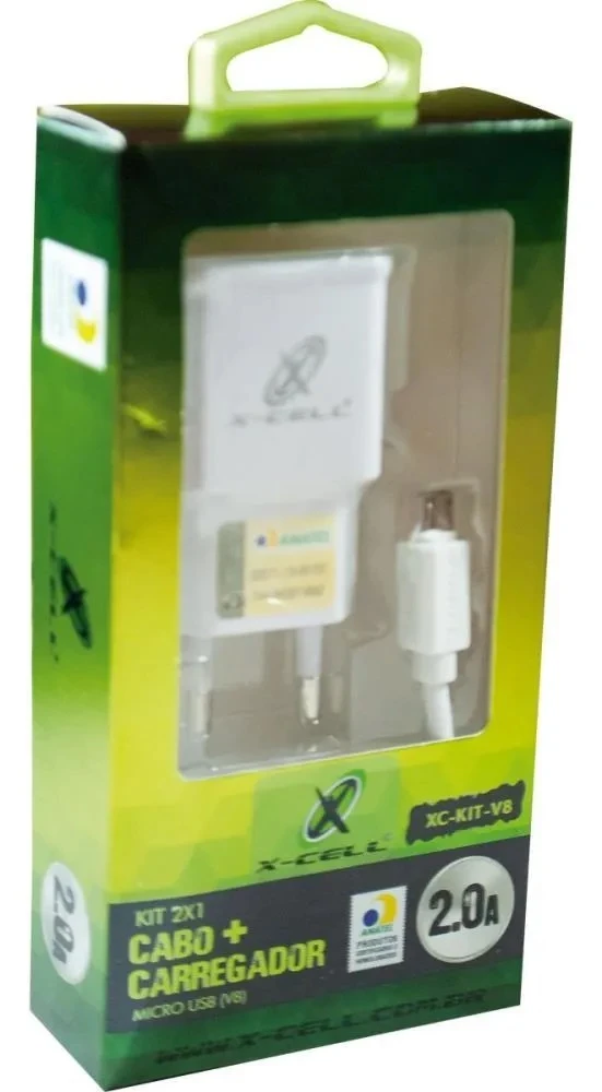 Kit Carregador Flex 2.0A + Cabo Micro USB (V8) 1.2 MetrosO Kit XC-KIT-V8 da Flex é a solução ideal para quem precisa de eficiência e praticidade. Com saída de 2.0A, ele garante uma carga estável e segura para seu smartphone ou tablet.DIFERENCIAIS:- Alta Performance: Fonte 2.0A real, ideal para dispositivos que exigem carga rápida.- Cabo Reforçado: 1,20m de comprimento, perfeito para carregar e transferir dados.- Bivolt Automático: Use em qualquer tomada (110V ou 220V) sem preocupações.- Compatibilidade: Conector Micro USB (V8), padrão em diversos modelos Android e acessórios.FICHA TÉCNICA:- Entrada: 100-240V- Saída: 5V / 2000mA (2.0A)- Comprimento do cabo: 1.2m- Conexão: Micro USB V8- CONTEÚDO DA EMBALAGEM: 1x Fonte de Parede USB 1x Cabo de Dados Micro USBProduto novo, com nota fiscal e garantia de fábrica.Atributos do ProdutoCategoria: "Eletrônicos, Áudio e Vídeo / Acessórios para Celulares / Carregadores e Cabos"Título do Produto: "Carregador Parede USB 2.0A Bivolt Cabo Micro USB V8 Flex Kit 2x1 1,2m"EAN: 7898615153951Marca: FLEXDescrição do Produto: não aplicaImagem 1: não aplicaSku: 7898615153951Peso: 0,072 kgAltura: 3 cmLargura: 7,5 cmComprimento: 16 cmProduto: Carregador Celular de Parede 2x1Metragem por Embalagem: não aplicaCor: não aplicaGarantia do Fabricante,Não InformadoTipo: Carregador de Parede + CaboIdentificação de Chamadas: não aplicaAcompanha Ramal: não aplicaViva-Voz: não aplicaReferência do Produto: XC-KIT-V8Marca do carregador: FlexModelo do carregador: XC-KIT-V8Tipos de conectores do cabo: USB / Micro-USB (V8)Tipo de carregador: De paredeTipo de velocidade de carga: RápidoTipo de uso: CelularMarcas de dispositivos móveis compatíveis: Samsung, Motorola, LG, Xiaomi (que usam V8).Modelos de dispositivos móveis compatíveis: Linha Galaxy J, Moto G5, K10 e similares.Voltagem de entrada: 110V/220V (Bivolt)Voltagem de saída: 5VInclui cabo: Sim