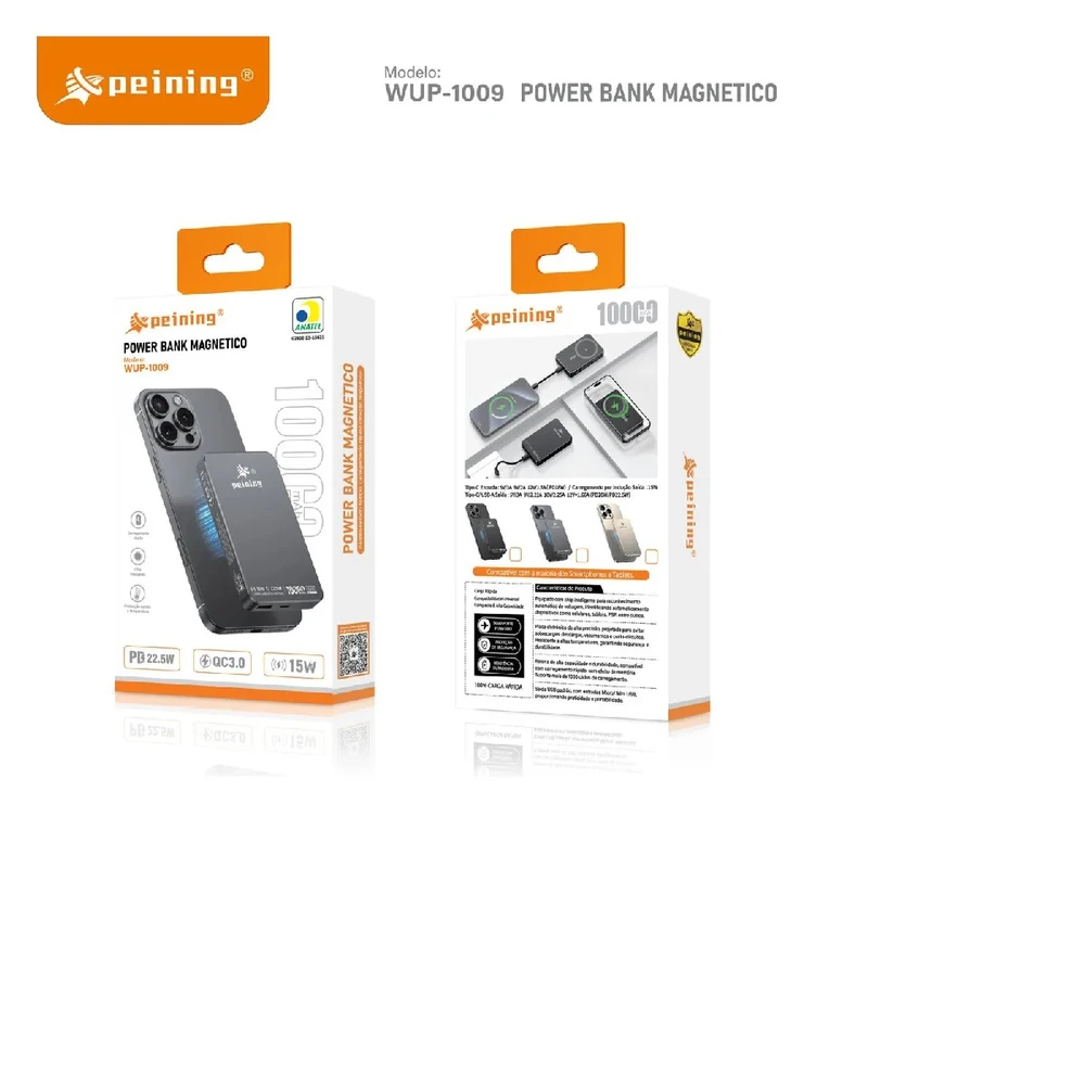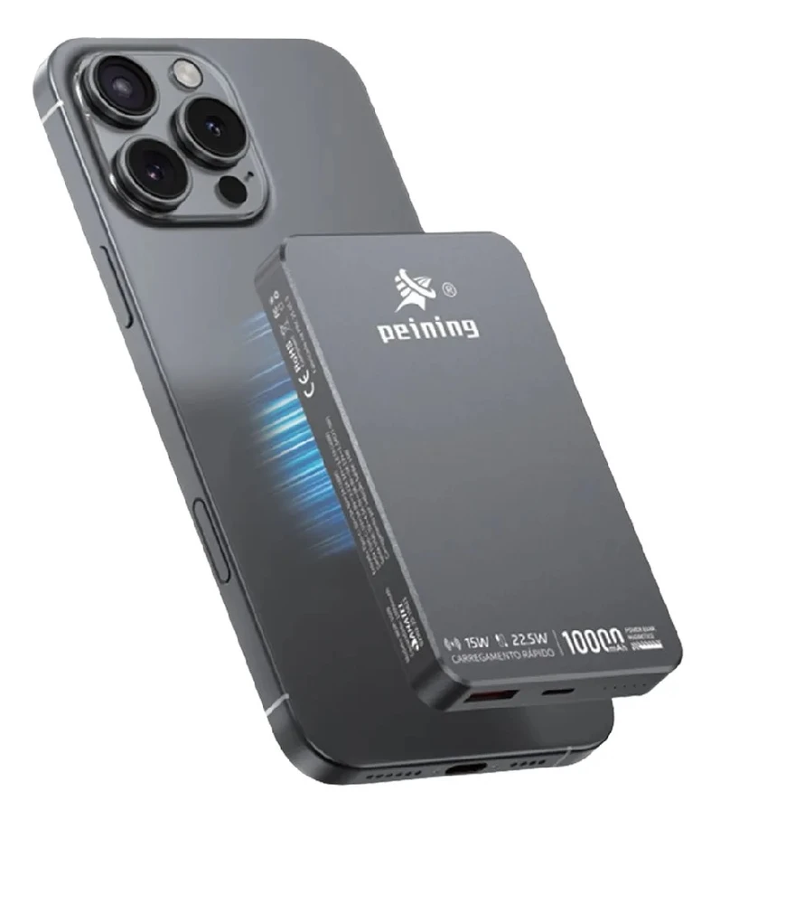 Apresentamos o Carregador Power Bank Titanium Magnético Peining WUP-1009, uma solução moderna e eficiente para manter seus dispositivos carregados em qualquer lugar. Com uma capacidade de 10.000 mAh, ele garante energia suficiente para múltiplas cargas, ideal para quem está sempre em movimento. O carregador possui uma fixação magnética inovadora, proporcionando praticidade e segurança ao carregar seu celular.