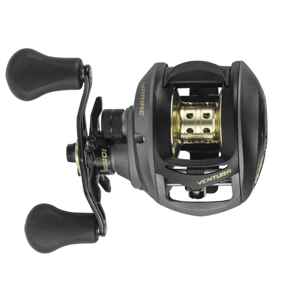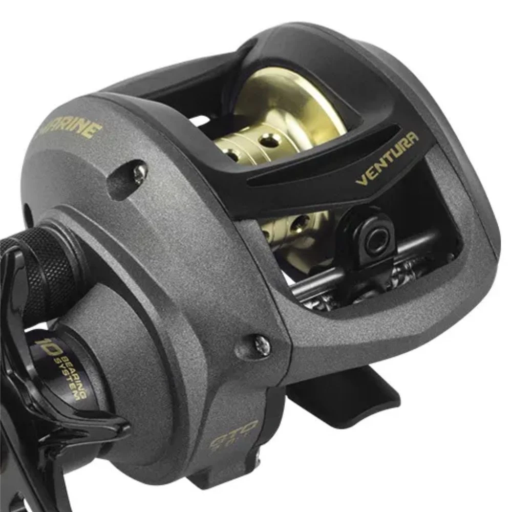 por seu sistema de 10 rolamentos, conta com sistema de freio magnético que reduz as cabeleiras. A Carretilha Marine Sports Ventura VT10 é confeccionada com corpo em grafite leve, carretel em alumínio aliviado, o modelo conta com engrenagens reforçadas e anti-reveso infinito com alta performance com Drag de 4 Kg. Segundo os usuários, é uma excelente opção para a pesca de black bass, traíra e tucunaré de pequeno a médio porte, com iscas artificiais, bem como para pesca de carpa, tilápia, pacu, entre outros peixes, com iscas naturais.