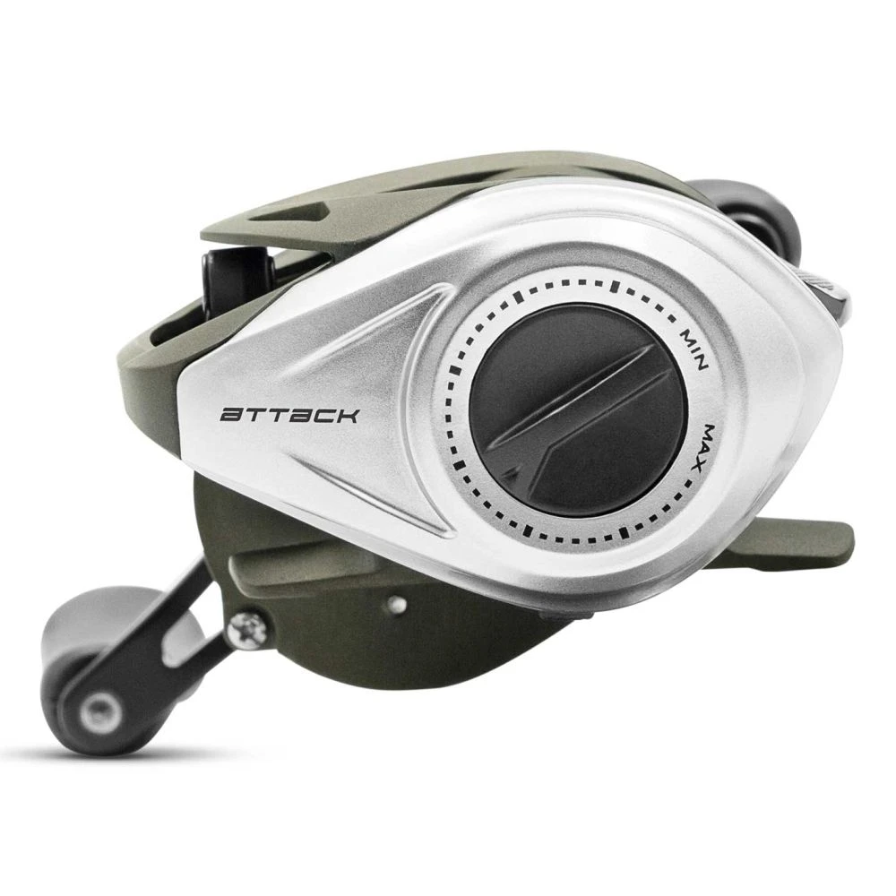 A carretilha Attack possui design atual e moderno e é perfeita para as pescarias com iscas artificiais. Ela possui características incríveis como o pinhão apoiado por rolamentos e o freio com disco de carbono, deixando-a forte e resistente. A carretilha Maruri Attack tem boa capacidade de linha em seu carretel de alumínio deixa o pescador tranquilo para suas pescarias e tudo isto pesando apenas 207g e com fricção de 5kg.