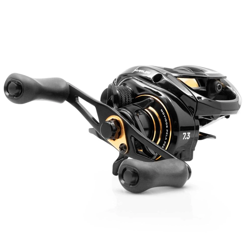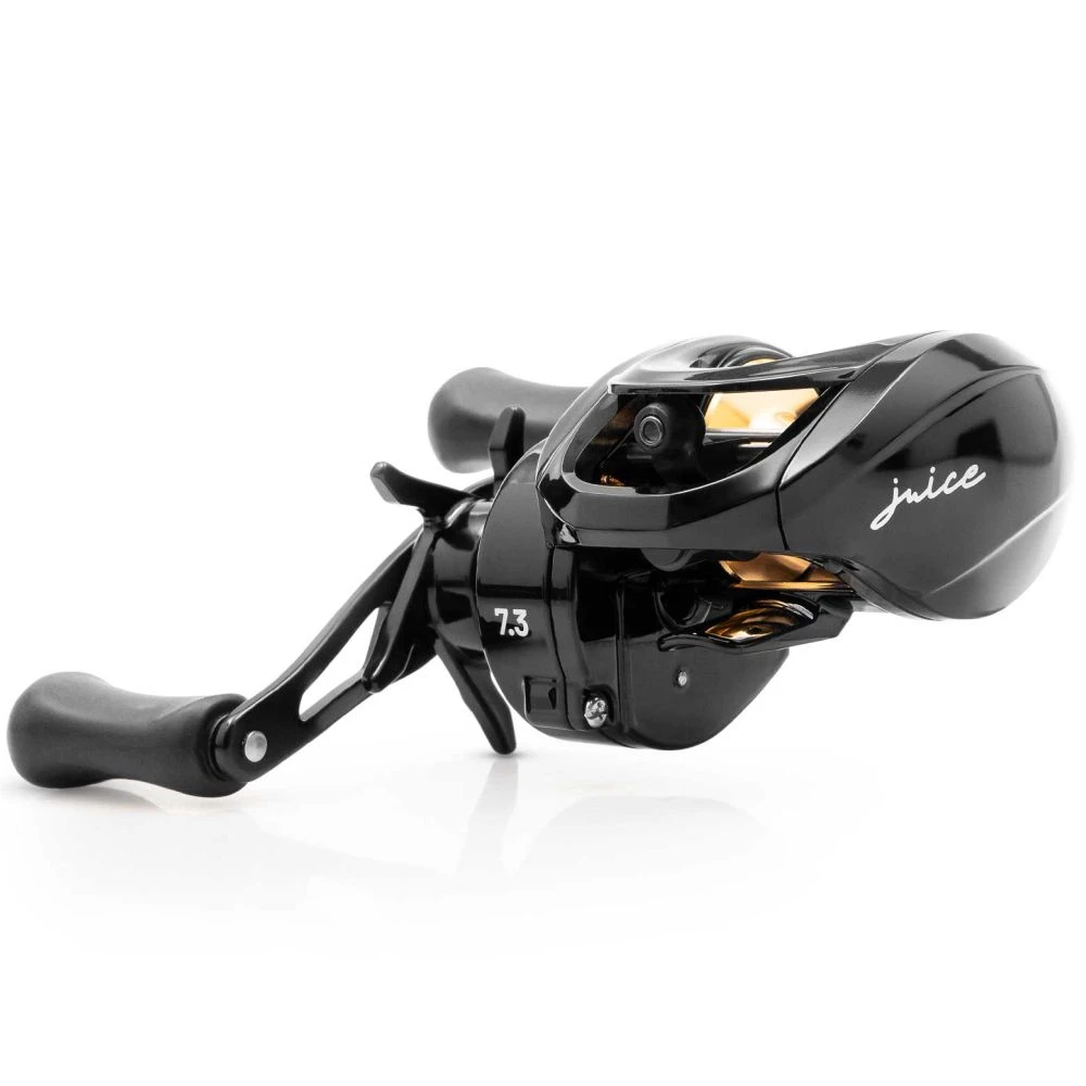 A carretilha Maruri Juice possui um sistema avançado de 7 rolamentos para arremessos suaves e precisos. Carretilha projetada em um corpo leve e resistente em grafite, recolhimento rápido de 7.3:1 ideal para iscas artificiais, sistema de freio centrífugo para ajustes precisos e drag de 5kg com discos de carbono para controle durante a luta com os peixes.