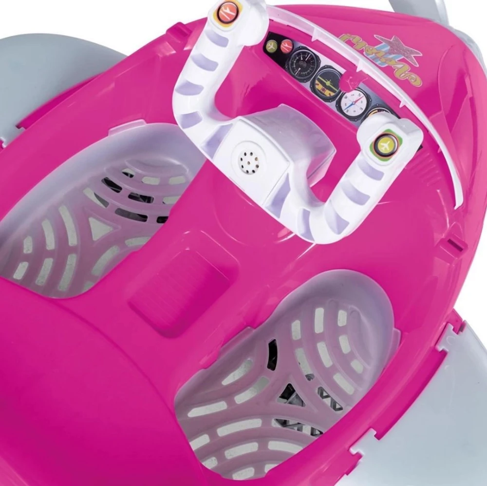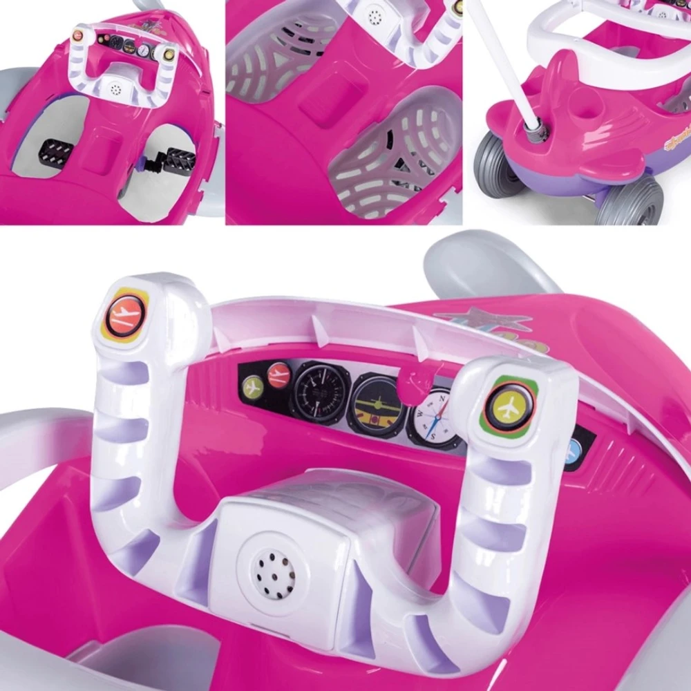 O Aeroh é um brinquedo completo que conta hélice que gira ao tocar, asas removíveis, capacete de brinquedo, haste direcionável e removível, rodas com anel antiderrapante, assento anatômico, suporte para garrafa ou acessórios, encaixe e desencaixe o empurrador com praticidade, apoio para os pés removível, suporte para bolsa/sacola na alça da haste e cercado de proteção removível com painel de atividades.