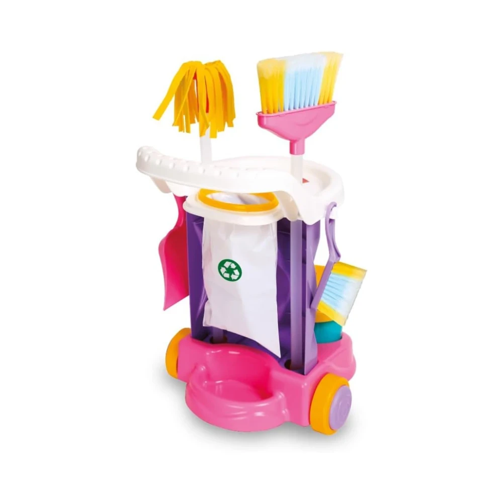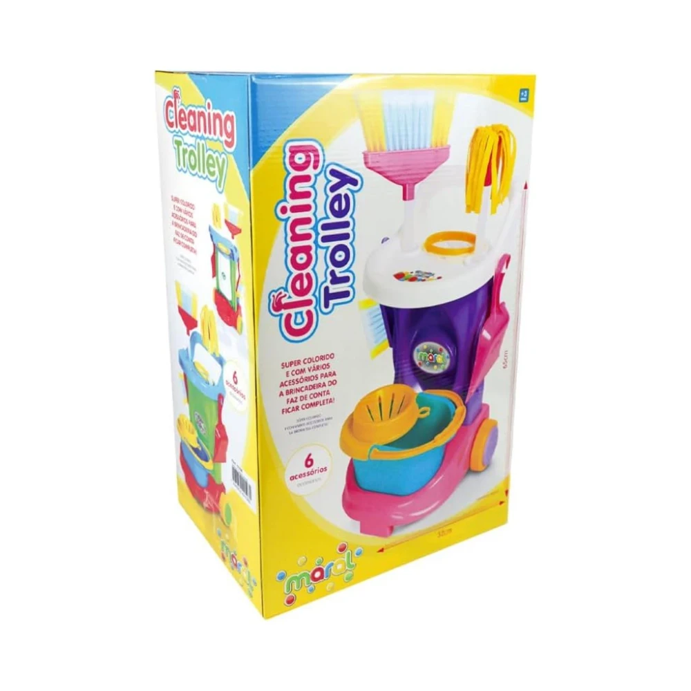 O carrinho de limpeza Cleaning Trolley Completo da Maral transforma a hora da brincadeira em um momento cheio de imaginação e aprendizado. Com design funcional, rodinhas e alça para empurrar, ele permite que as crianças explorem o faz de conta imitando as tarefas do dia a dia de forma divertida e educativa. O conjunto acompanha acessórios realistas, como vassoura, esfregão com base em microfibra, balde com cesto para torcer, espanador, pazinha, suporte e saco de lixo, incentivando o cuidado e a organização desde cedo.