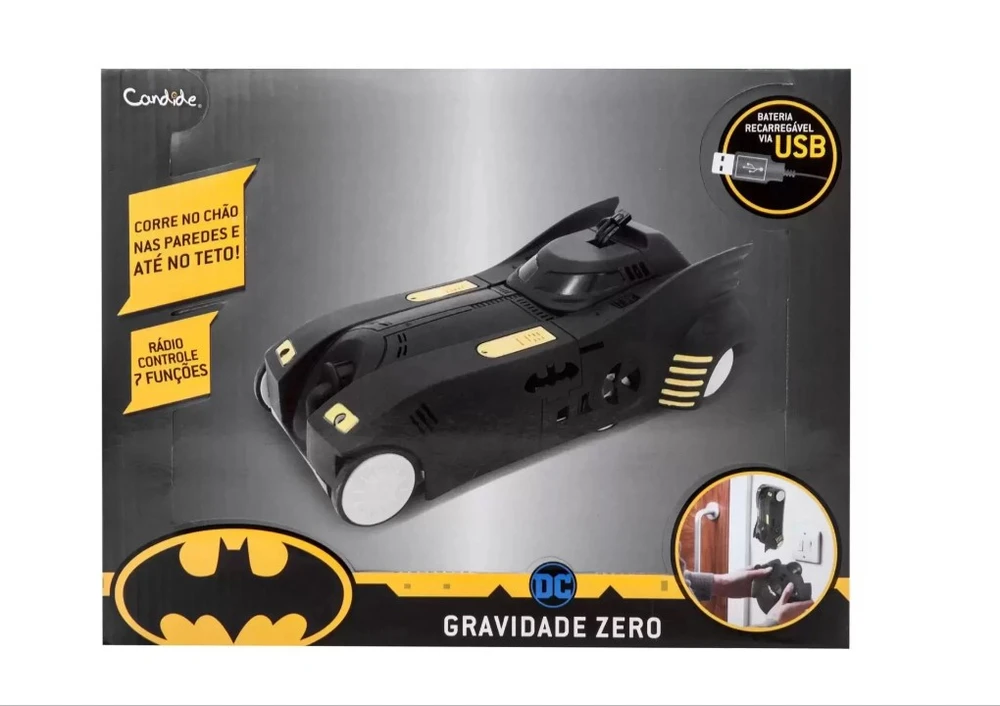 Carrinho Controle Remoto Batman - Gravidade Zero 7 Funções Anda chão, Paredes e Teto - Candide
