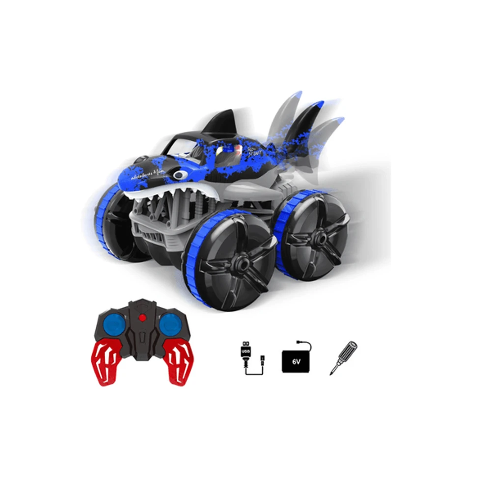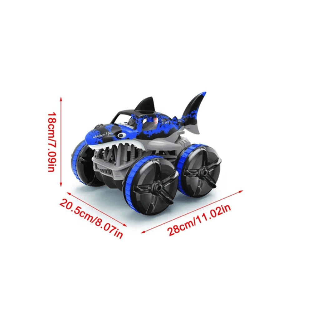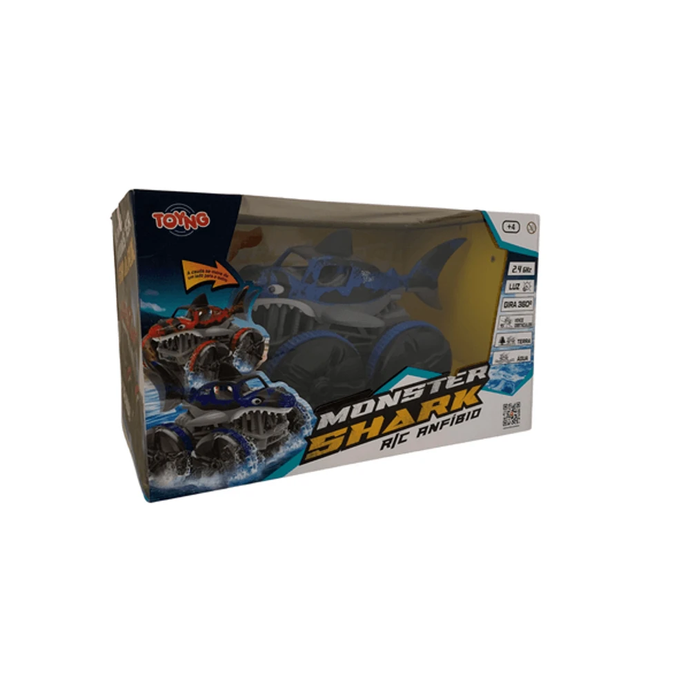 Carrinho de Controle Remoto Anfibio Azul - Toyng Este carrinho de tubarão de radio controle anfíbio é muito legal. O Monster Shark pode avançar e retroceder, vire à esquerda e à direita. Pode andar na água, andar no chão e na grama. Além disso, pode girar 360 graus. Imagem meramente ilustrativa, acompanha um carrinho Azul.
