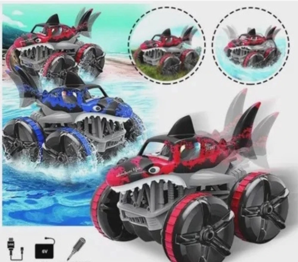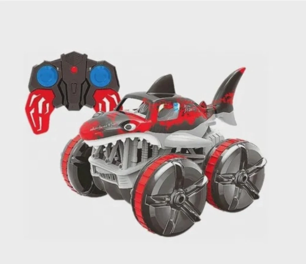 Carrinho de Controle Remoto Anfibio Vermelho - Toyng Este carrinho de tubarão de radio controle anfíbio é muito legal. O Monster Shark pode avançar e retroceder, vire à esquerda e à direita. Pode andar na água, andar no chão e na grama. Além disso, pode girar 360 graus. Imagem meramente ilustrativa, acompanha um carrinho Vermelho.