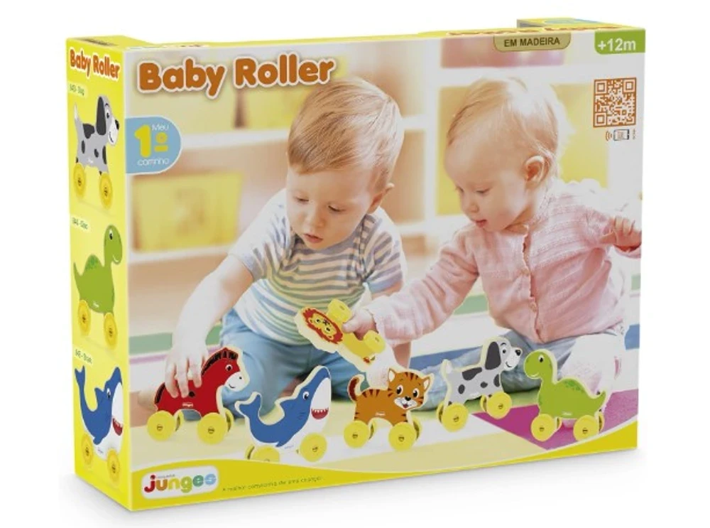 Meu primeiro carrinho! A linha de animais Baby Roller apresenta características pensadas para divertir, ensinar e estimular o seu bebê.