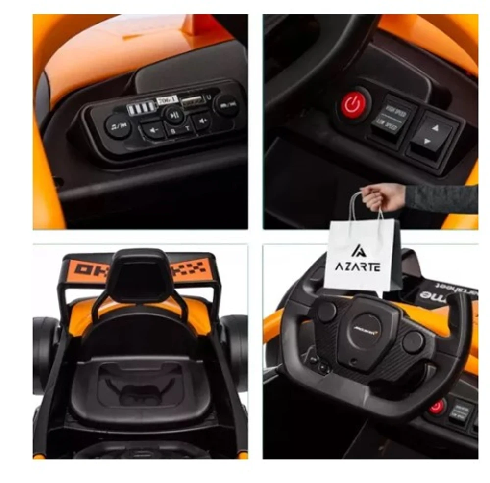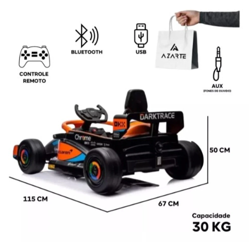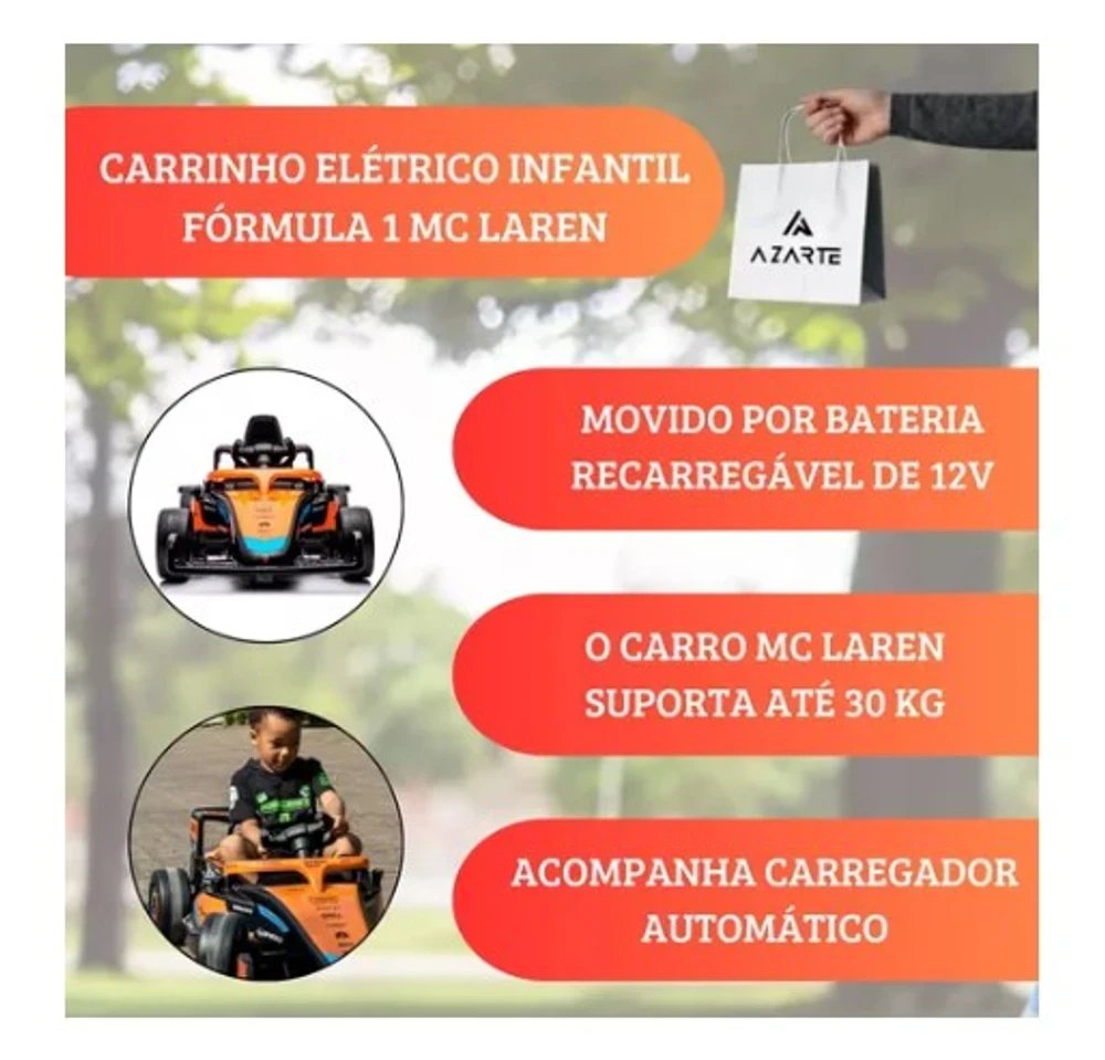 O Novo Carrinho Elétrico Good Mood de corrida Mclaren, vai despertar a emoção das pistas na criançada! Seu pequeno(a) vai viver momentos de muita alegria e emoção com seu Moderno, Completo e Divertido Carro Elétrico.