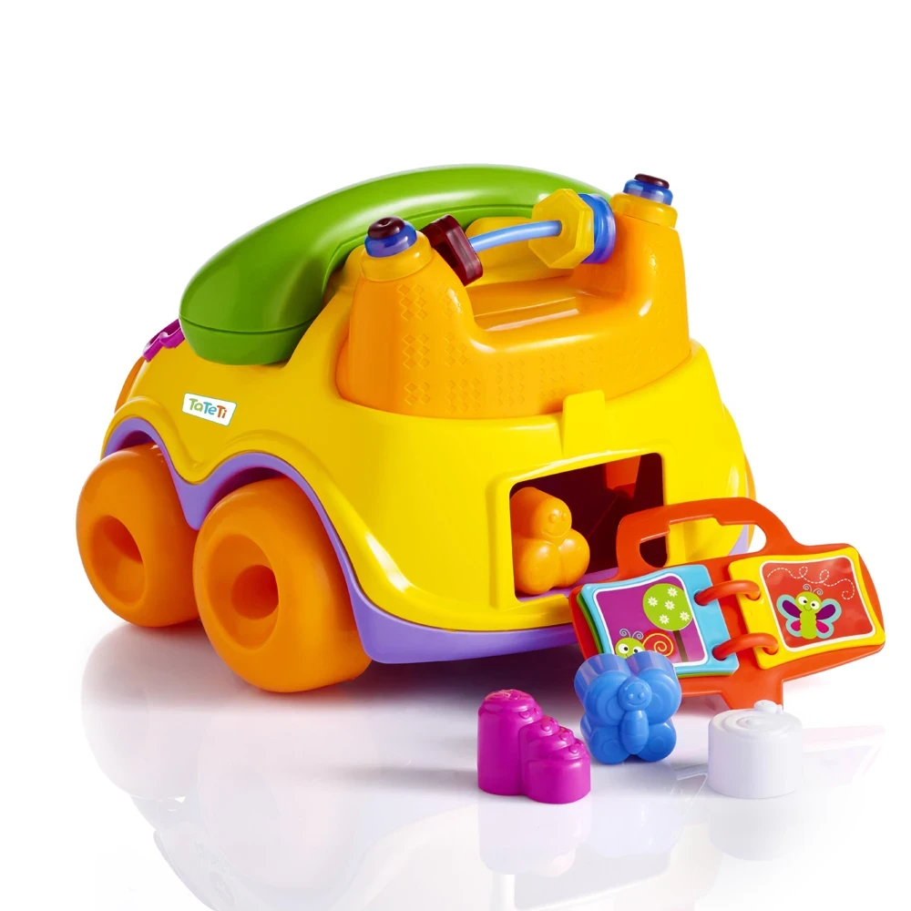 Alô, quem está falando? O Carrinho Falafone Tateti é um brinquedo educativo que estimula a imaginação e a coordenação motora dos pequenos. Super colorido e cheio de interações, ele possui sons ao tocar as teclas do telefone, além de peças didáticas para encaixe, uma esfera giratória e um livrinho na parte de trás para incentivar o aprendizado através da descoberta. Perfeito para as crianças imitarem os adultos e se divertirem enquanto aprendem.