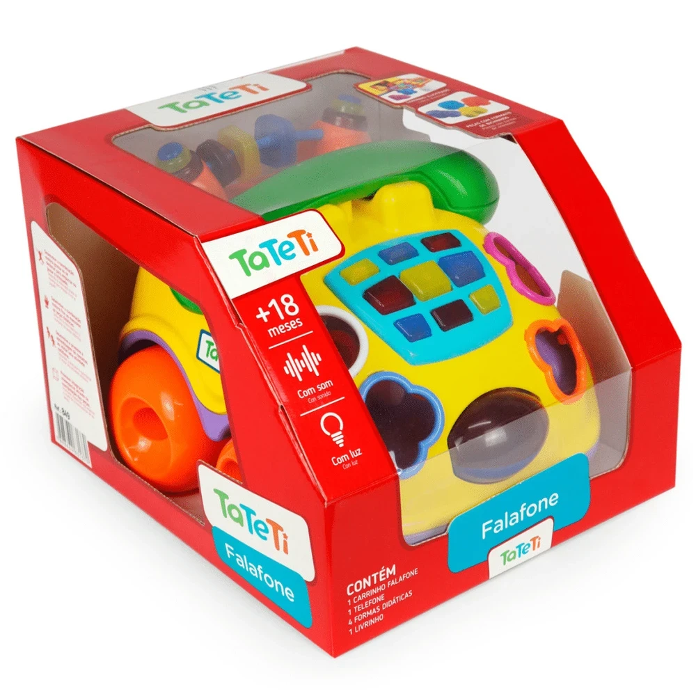 Conteúdo da embalagem: 1 carrinho Falafone, 1 telefone, 4 formas didáticas e 1 livrinho