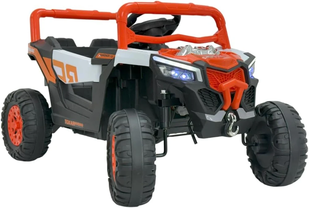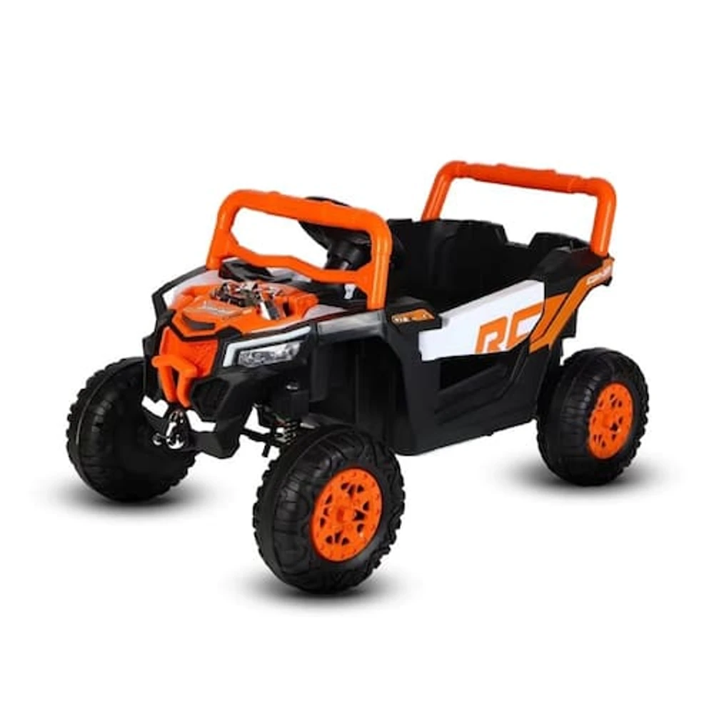 Um Carrinho elétrico infantil que traz a adrenalina dos veículos OFF-ROAD para o quintal de casa, com pneus robustos para uma tração excelente em qualquer tipo de superfície, seja grama, terra ou asfalto. A estrutura reforçada com barras de proteção assegura a segurança enquanto eles exploram o mundo ao redor. Além disso, detalhes como o motor falso com aparência realística contribuem para uma experiência de condução mais imersiva e divertida.
