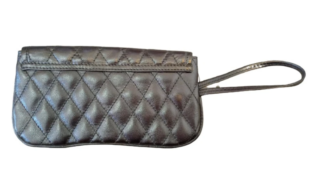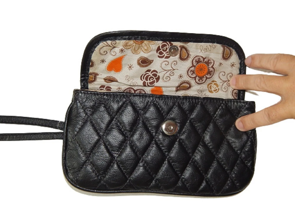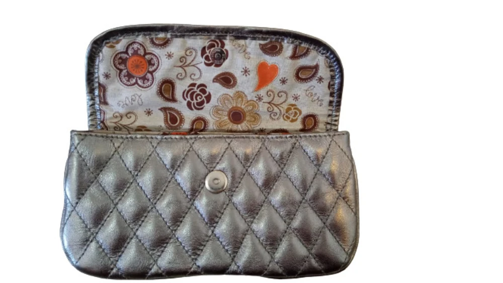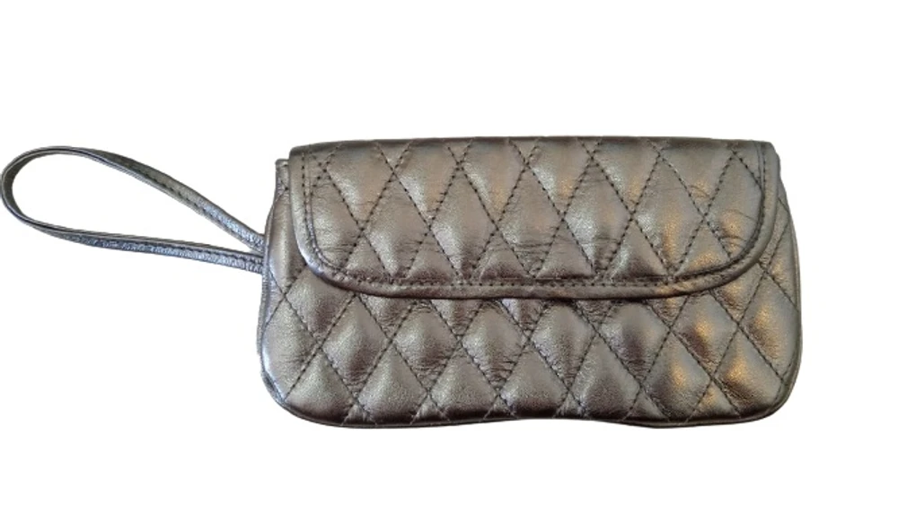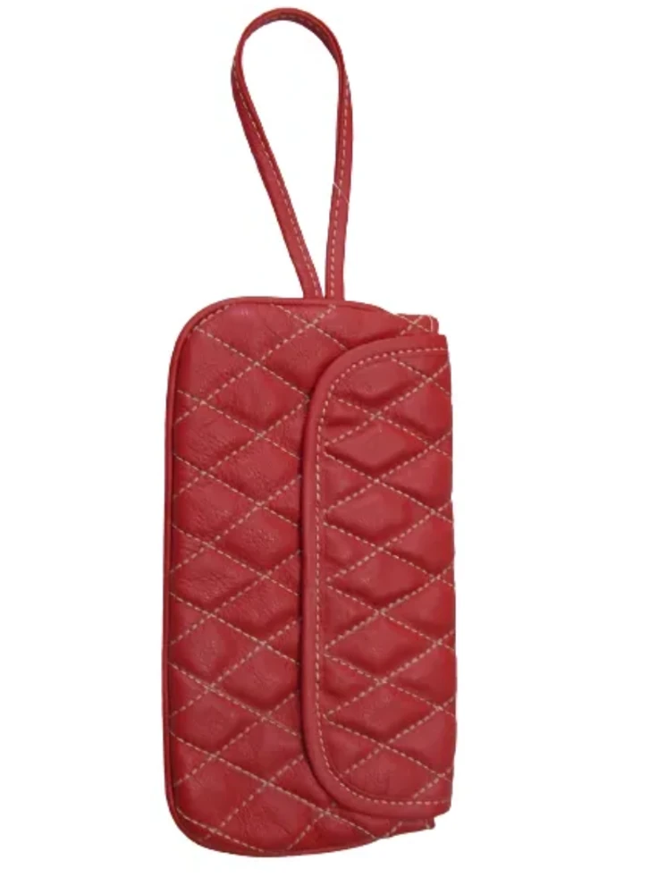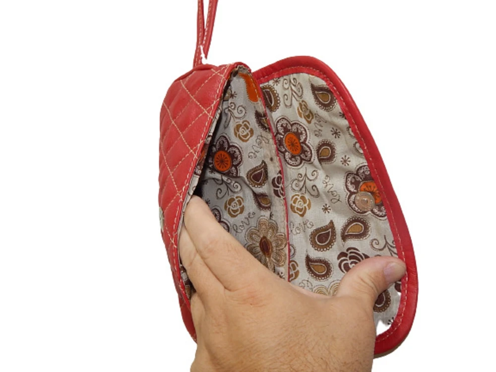 Carteira Social de Couro Zup fabricada em Couro, toda trabalhada em metalassê forrada com tecido estampado e com alça de pulso, ideal para uso, em casamentos, noivados e festas com nossa carteira social seu Look vai estar completo!