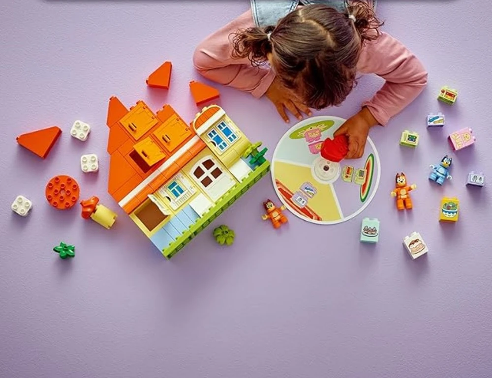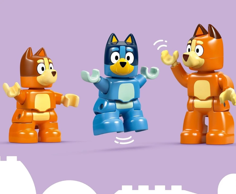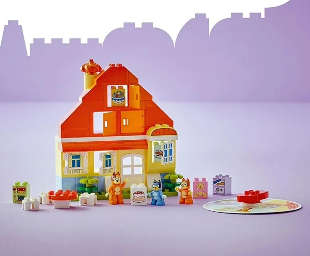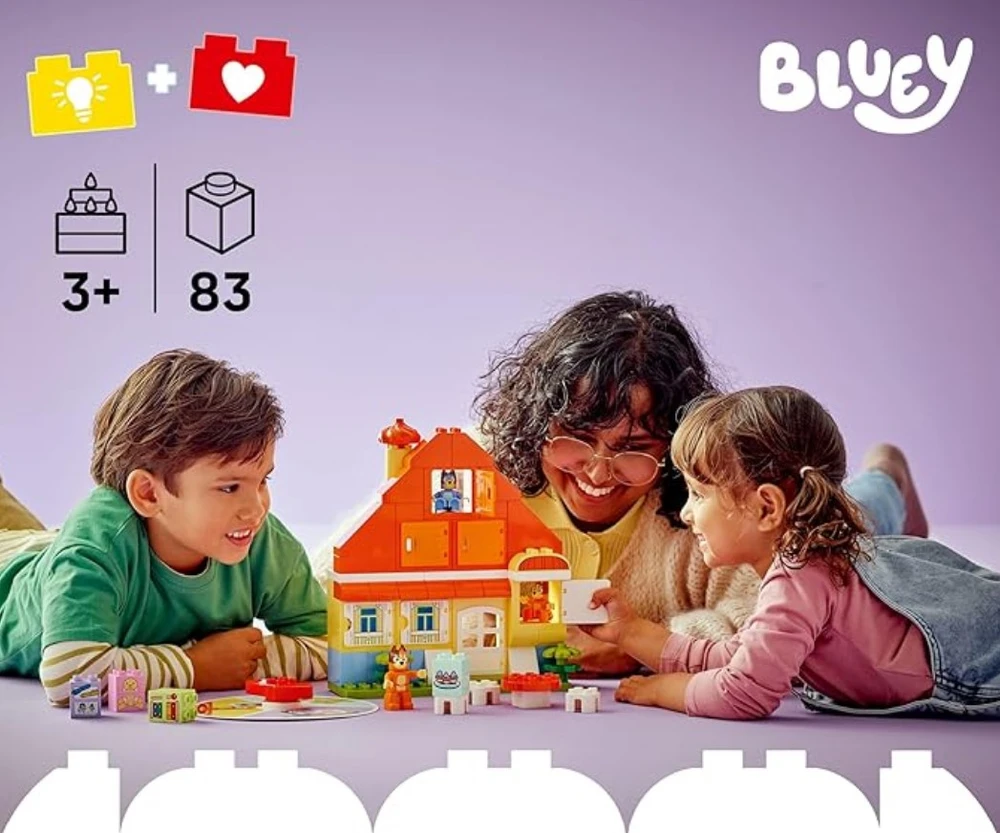 Duplique a diversão com o LEGO DUPLO Bluey's Family House com Jogo da Memória (10459). Este conjunto de construção educacional oferece às crianças de 3 a 5 anos duas maneiras emocionantes de brincar com seus personagens favoritos da TV. As crianças podem construir a colorida casa da família Heeler ? completa com janelas que abrem, mesa de jantar, cadeiras e o coelho Floppy ? e sonhar com aventuras divertidas com as figuras de Bluey, Bingo e Mamãe (Chilli). A brincadeira se transforma em aprendizado quando os pequenos usam o jogo giratório incluso para praticar a memória e as habilidades de combinação, encontrando peças escondidas atrás das janelas. Ambos os jogos ajudam as crianças a desenvolver habilidades essenciais como comunicação, comparação, imaginação e coordenação motora fina. Perfeito para brincadeiras independentes ou em família, este conjunto de construção interativo auxilia em marcos de desenvolvimento com personagens familiares que as crianças conhecem e amam. Combine com outros conjuntos LEGO DUPLO Bluey (vendidos separadamente) para expandir a diversão para crianças em idade pré-escolar. Contém 83 peças.