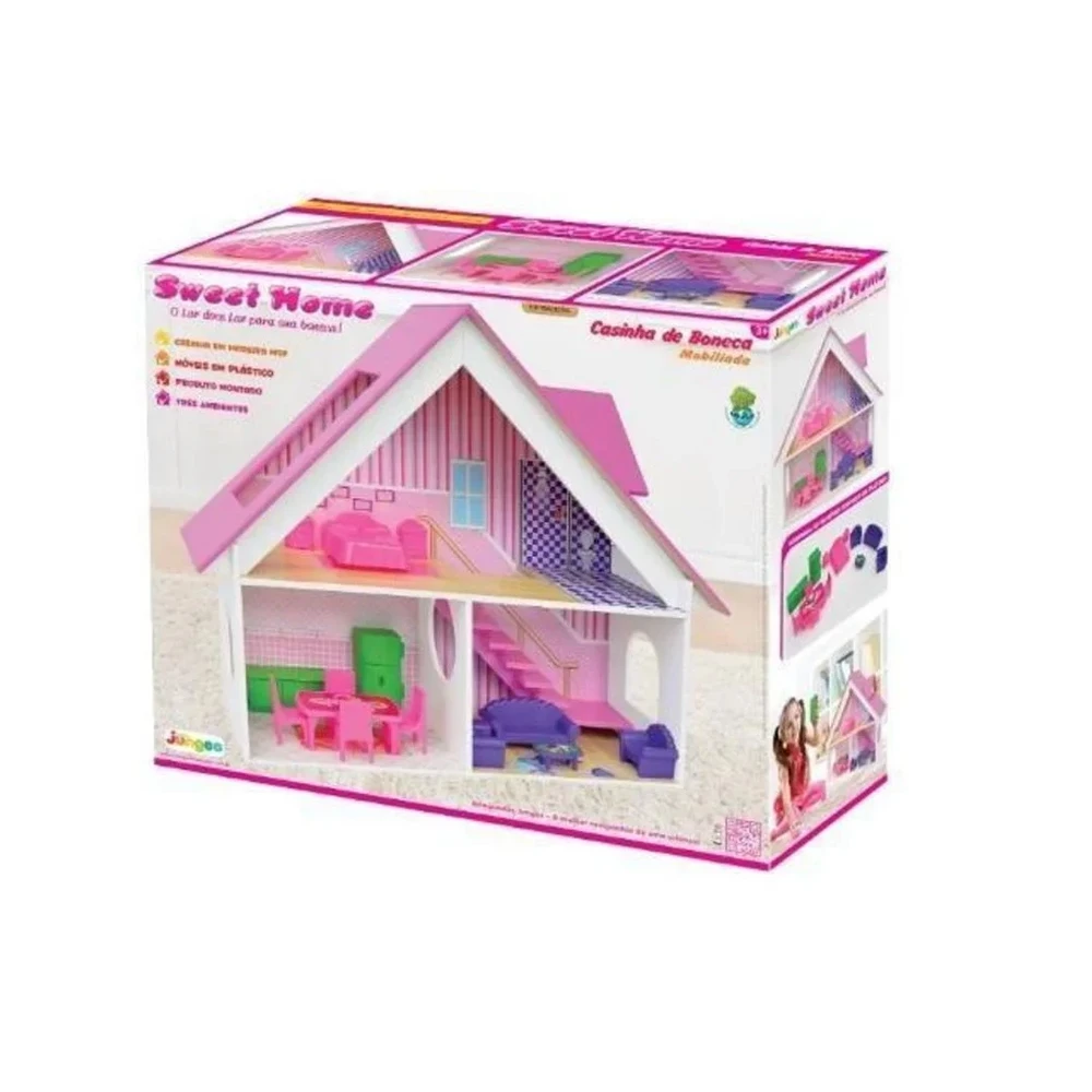A Casinha Boneca Sweet Home Junges oferece momentos de brincadeira encantadores, incentivando a imaginação, a criatividade e a interação das crianças com um ambiente seguro e divertido.