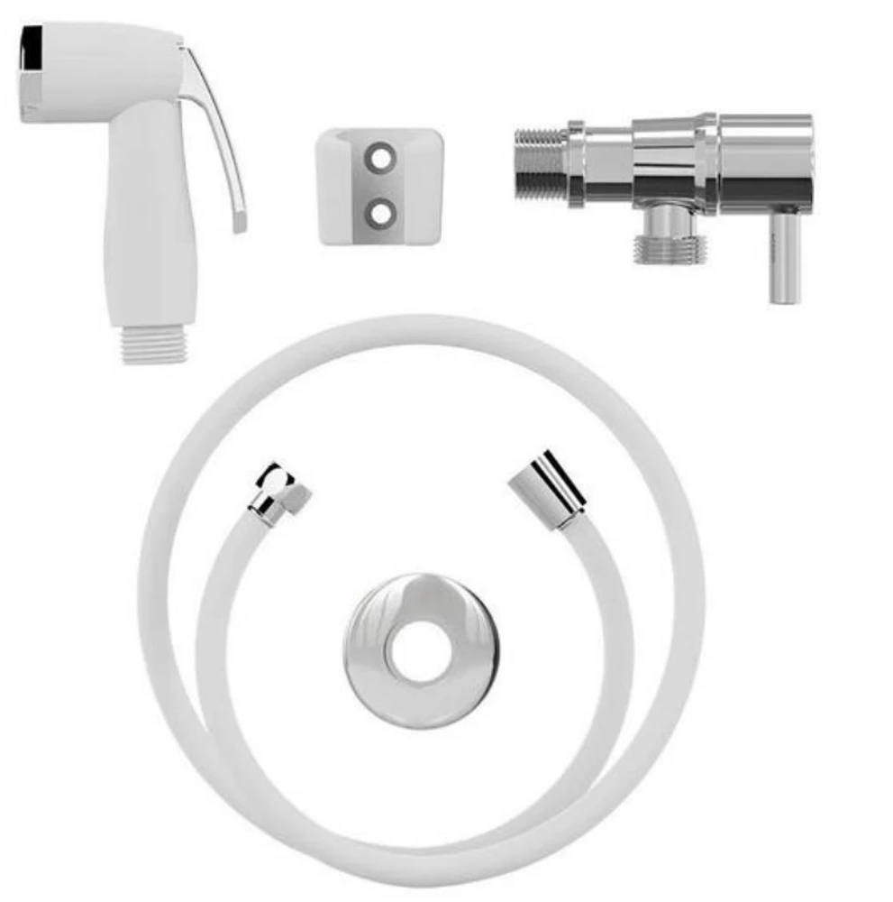ducha higiênica pop branca com engate flexível em pvc reforçado com malha interna de poliéster 1,20m e registro em abs cromado