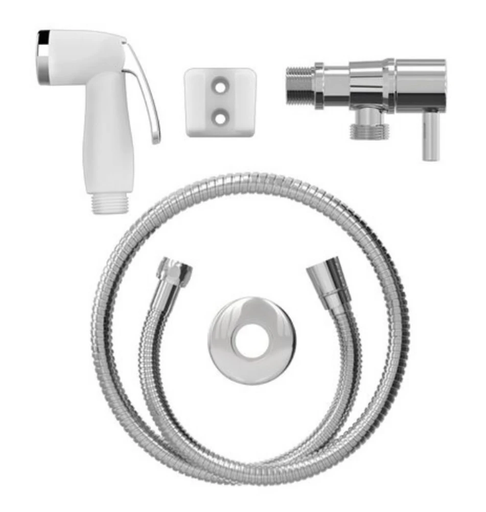 ducha higiênica pop cromada com engate flexível em aço inoxidável 1,20m e registro em abs cromado