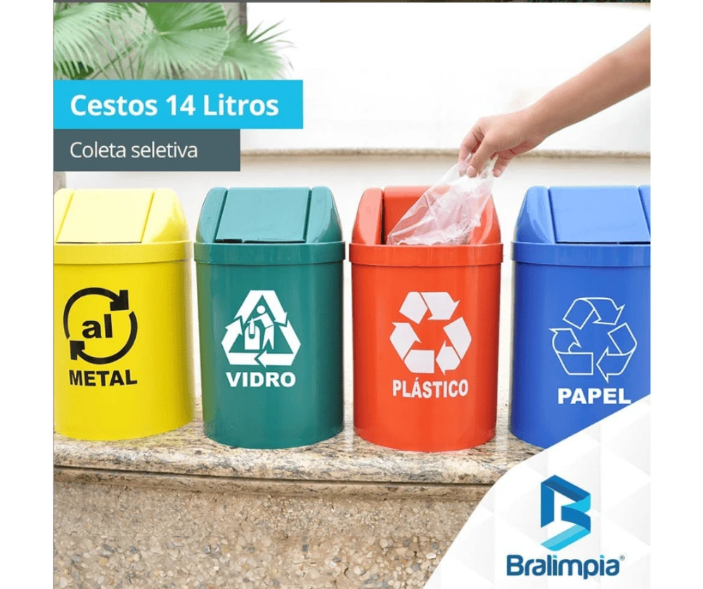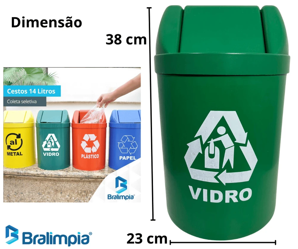 Cesto Coletor Lixeira Vai Vem 14 Lt Reciclavel Vidros Bralimpia