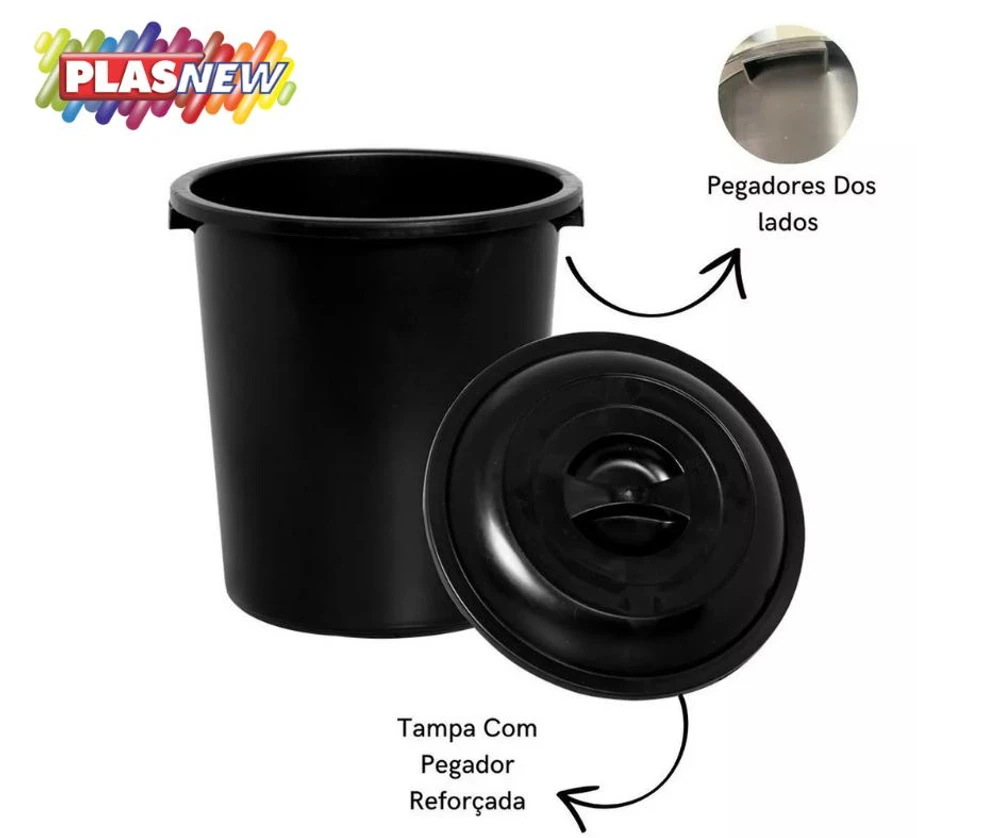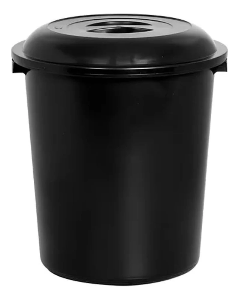 Cesto Fechado Preto Com Tampa 53 Litros
