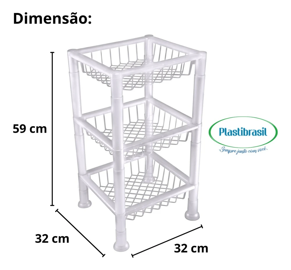 Organizador/Fruteira Premium 3 AndaresFruteira Premium, possui quatro andares, peças montáveis.Produzida em polipropileno natural (PP), disponível nas cores branco, chumbo e preto.Auxilia na organização, podendo ser usada em qualquer cômodo da casa e até mesmo no ambiente de trabalho.Forma fácil e rápida de organizar suas coisas em qualquer cômodo da casa, principalmente na cozinha;Material de qualidade, ao desmontar, vira uma peça compacta;Suporta até 3 kg por cesto;Produto Resistente, fácil montagem e prático para o dia a dia.