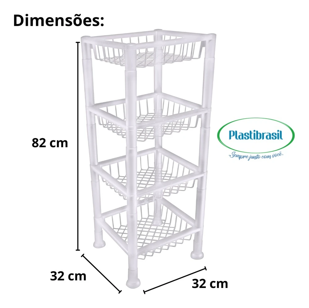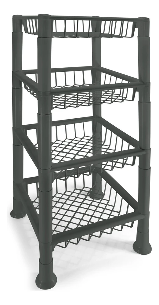 Organizador/Fruteira Premium 4 AndaresFruteira Premium, possui quatro andares, peças montáveis.Produzida em polipropileno natural (PP), disponível nas cores branco, chumbo e preto.Auxilia na organização, podendo ser usada em qualquer cômodo da casa e até mesmo no ambiente de trabalho.Forma fácil e rápida de organizar suas coisas em qualquer cômodo da casa, principalmente na cozinha;Material de qualidade, ao desmontar, vira uma peça compacta;Suporta até 3 kg por cesto;Produto Resistente, fácil montagem e prático para o dia a dia.