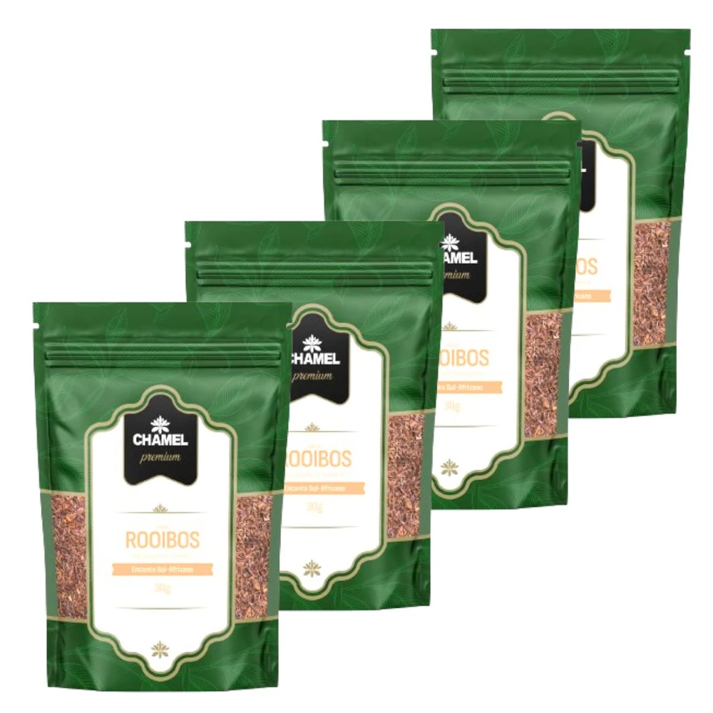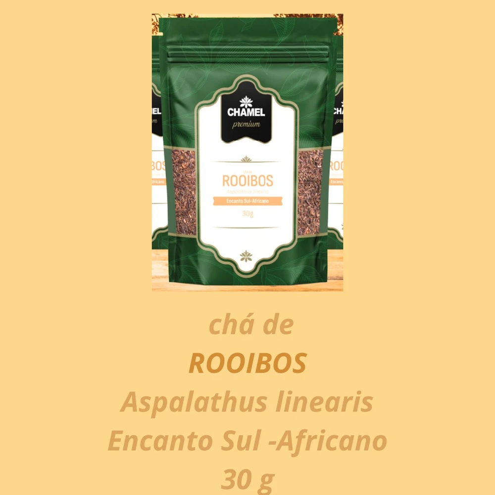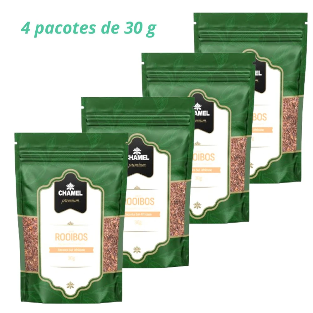 Chá de Rooibos (Aspalathus linearis) Quantidade: 4 pacotes de 30 g Marca: Chamel (linha Premium)